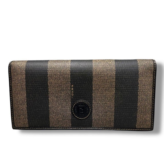 美品 FENDI フェンディ 長財布 ペカン ストライプ メンズ レディース