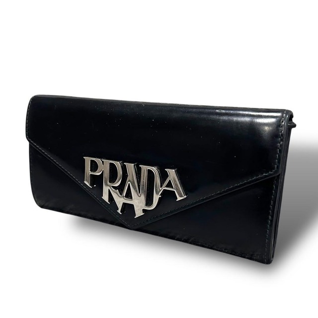 美品 希少 PRADA プラダ ビッグロゴ 長財布 レザー ブラック パテント