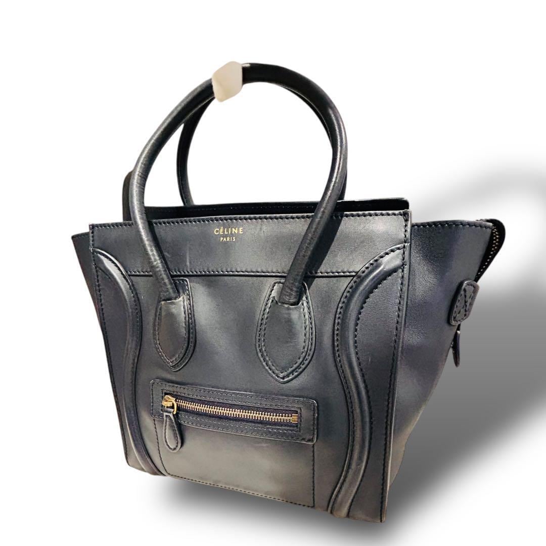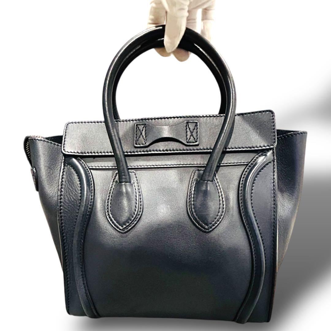 美品 CELINE セリーヌ ラゲージトート バッグ 大容量 A4収納 ネイビー