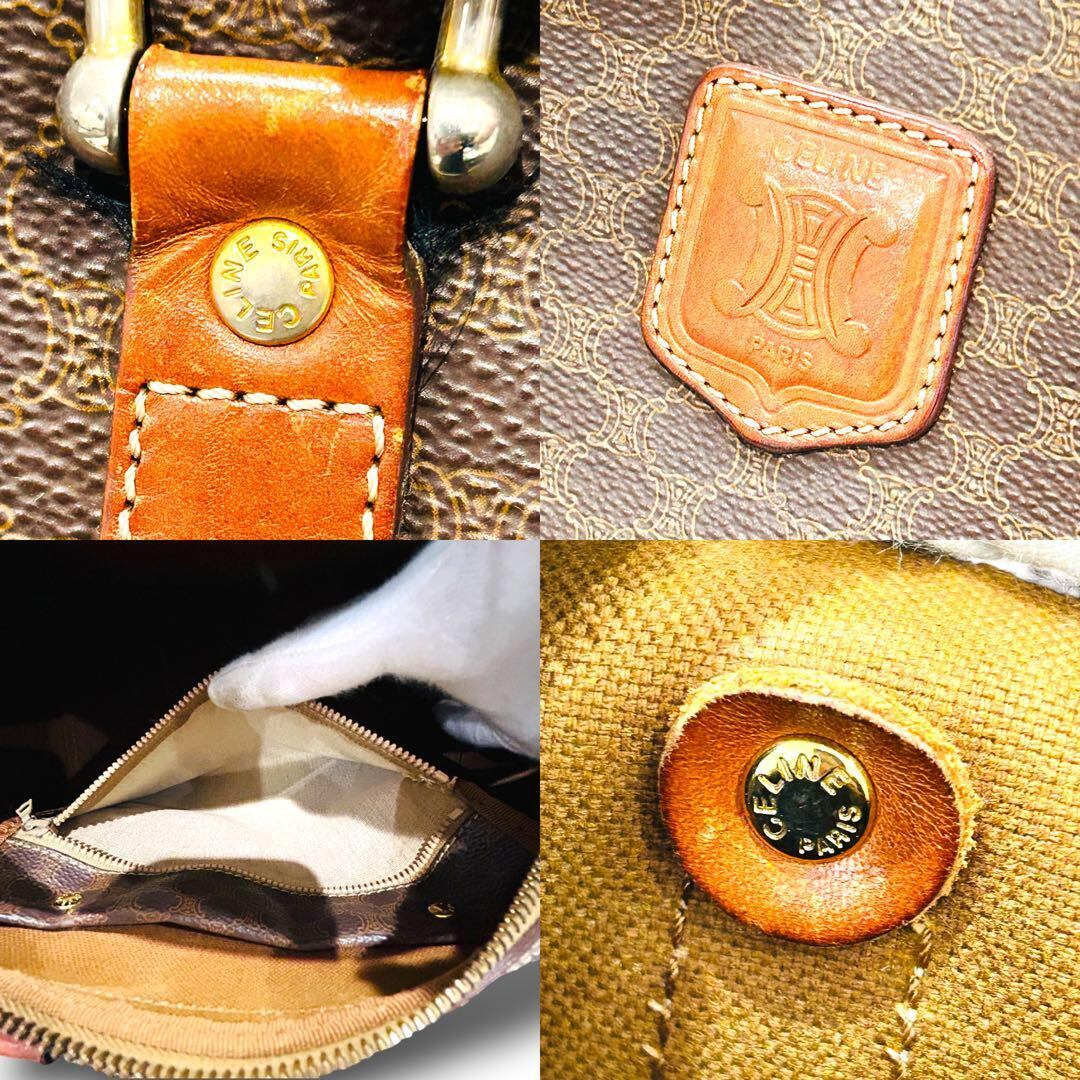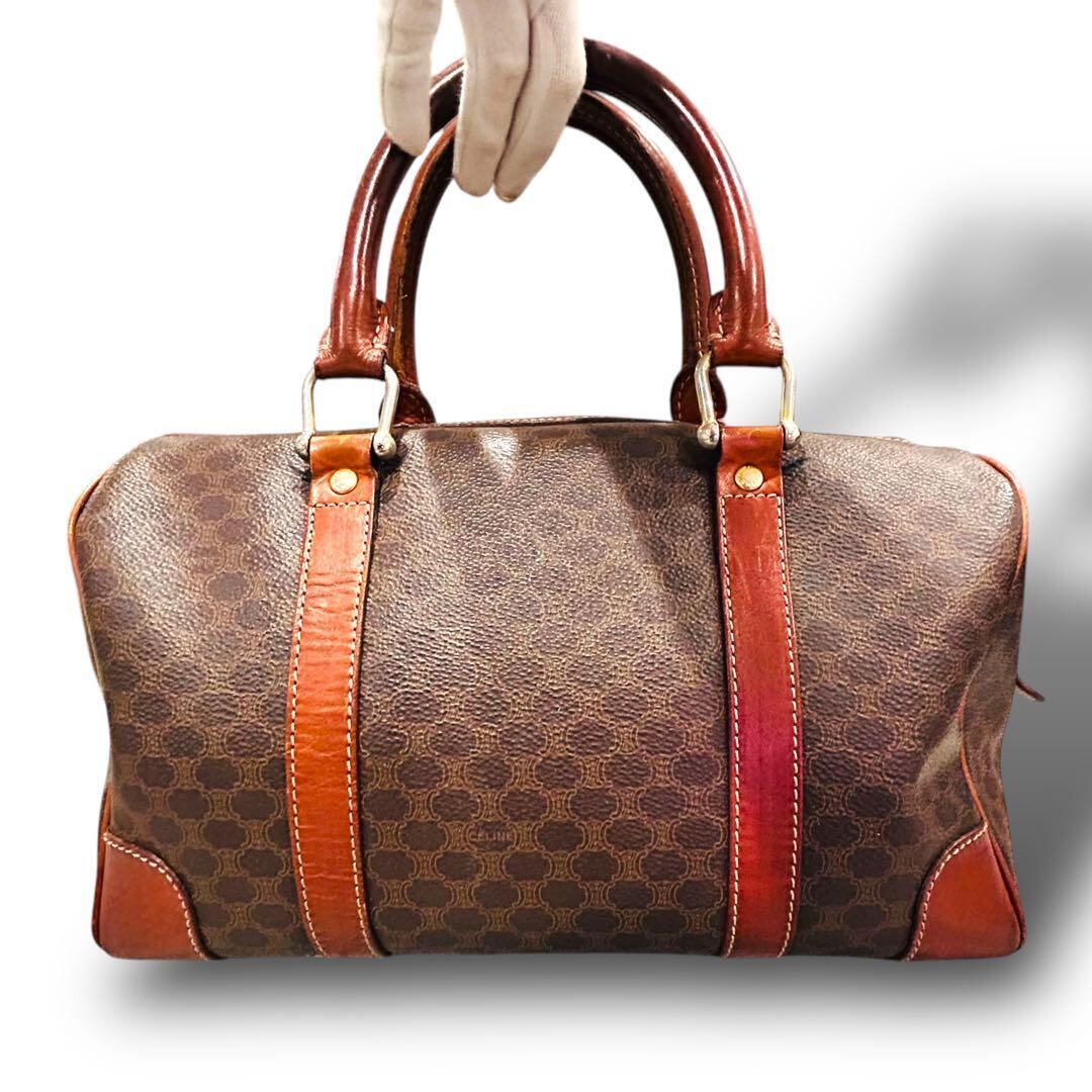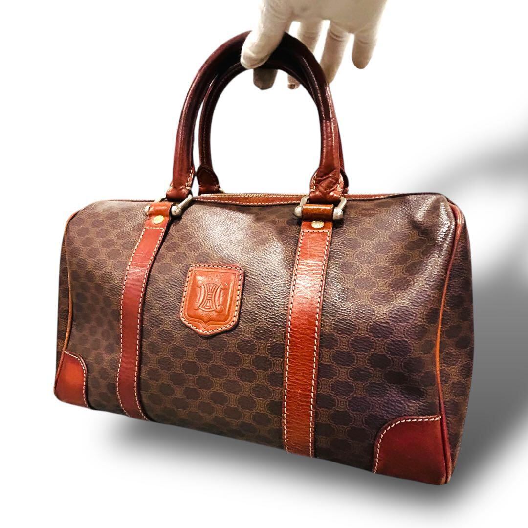 CELINE セリーヌ マカダム柄 ハンドバッグ ボストンバッグ ブラウン ビジネス 旅行 大容量 出張 メンズ レディース ヴィンテージ レザー