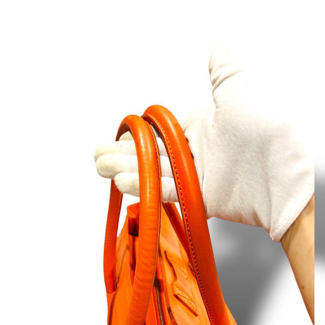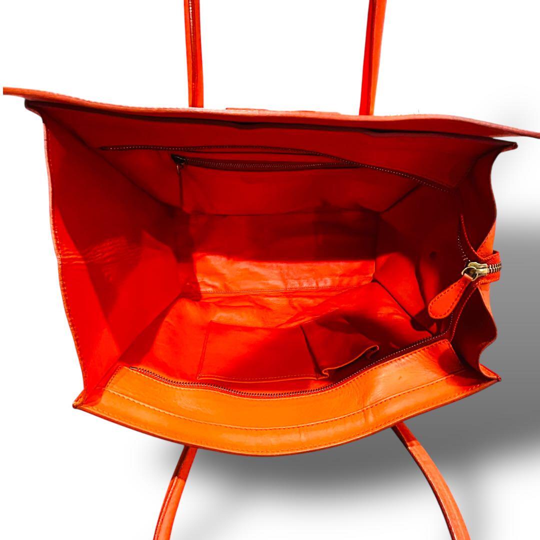 美品 CELINE セリーヌ ラゲージ トートバッグ レディース A4収納 オレンジ