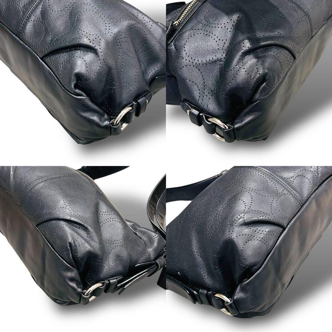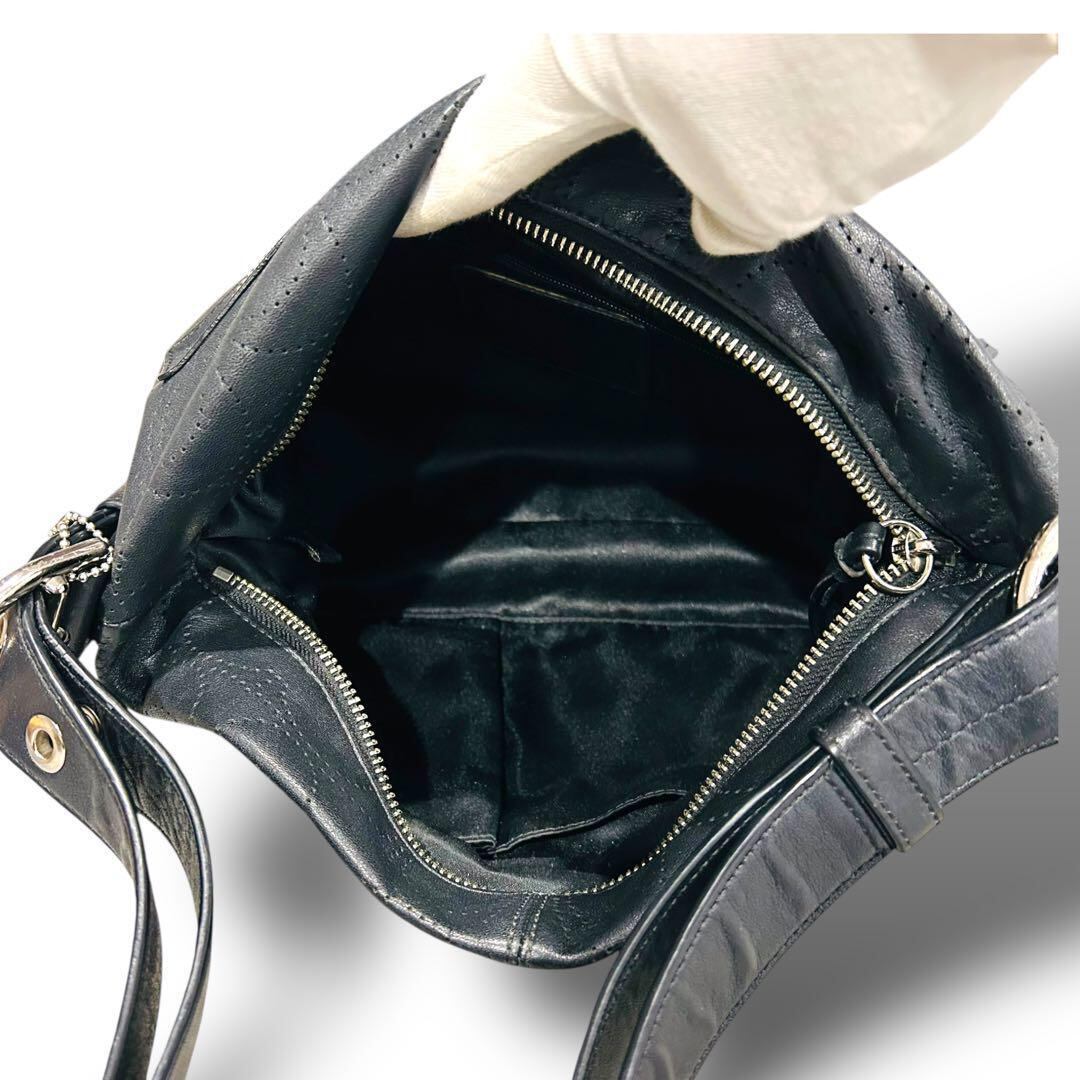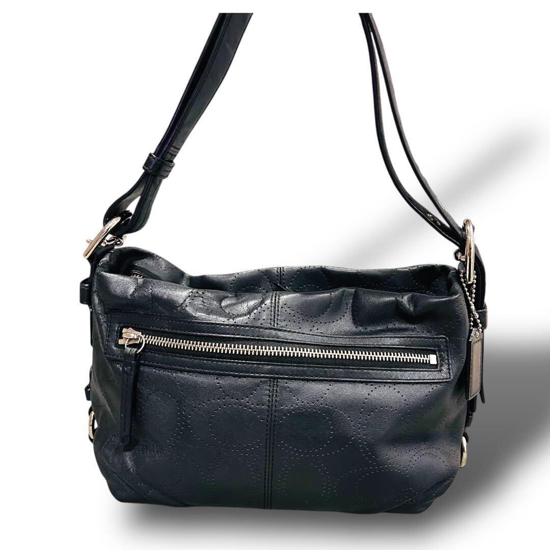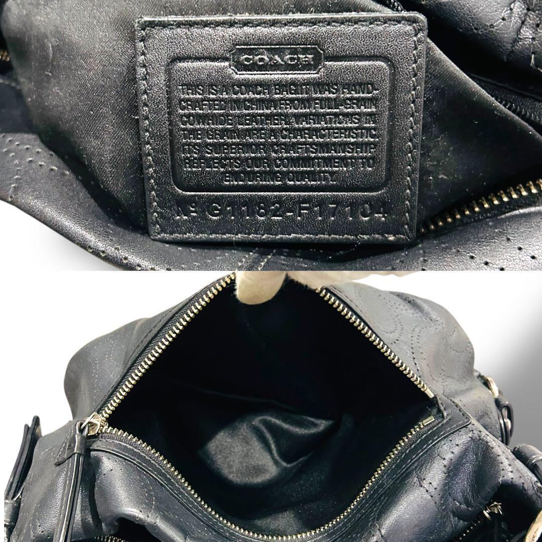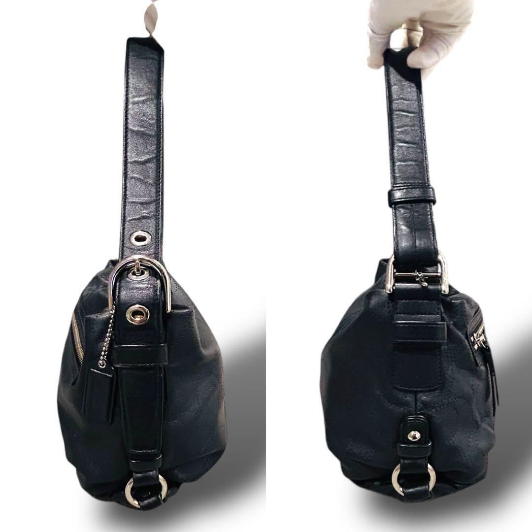 極美品 COACH コーチ シグネチャー柄 ブラック ワンショルダー レザー