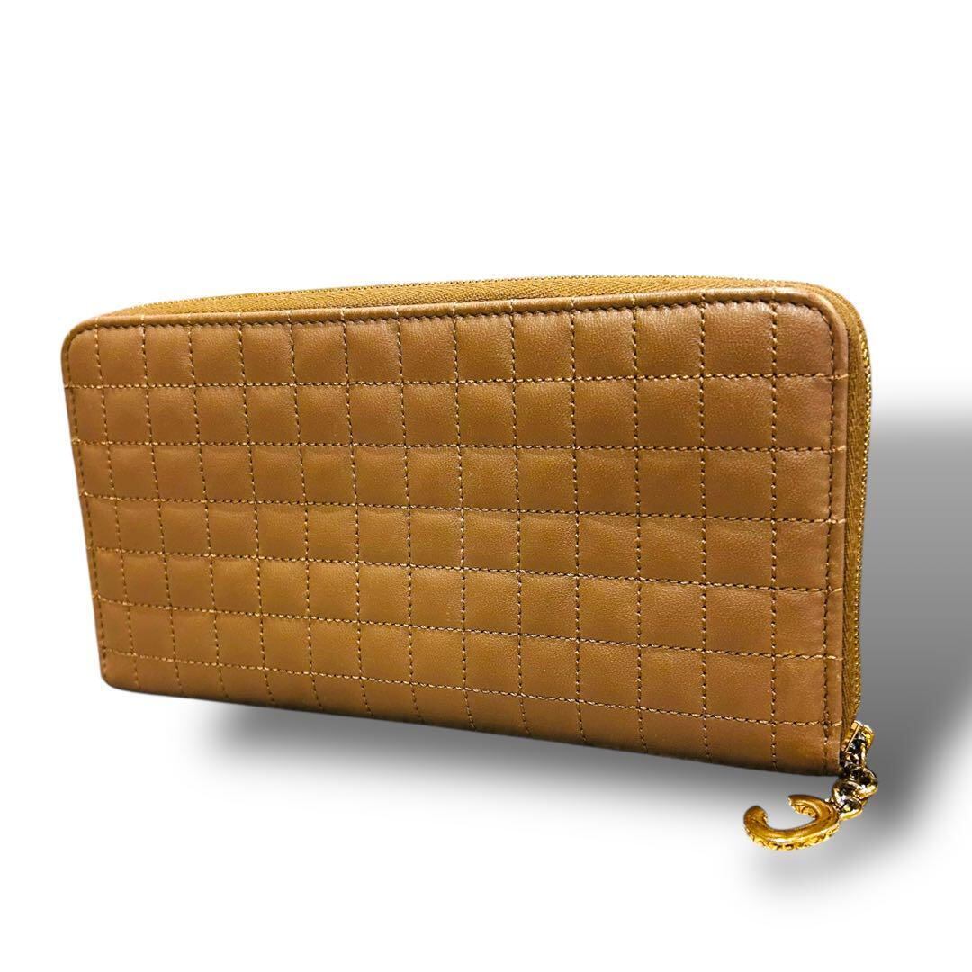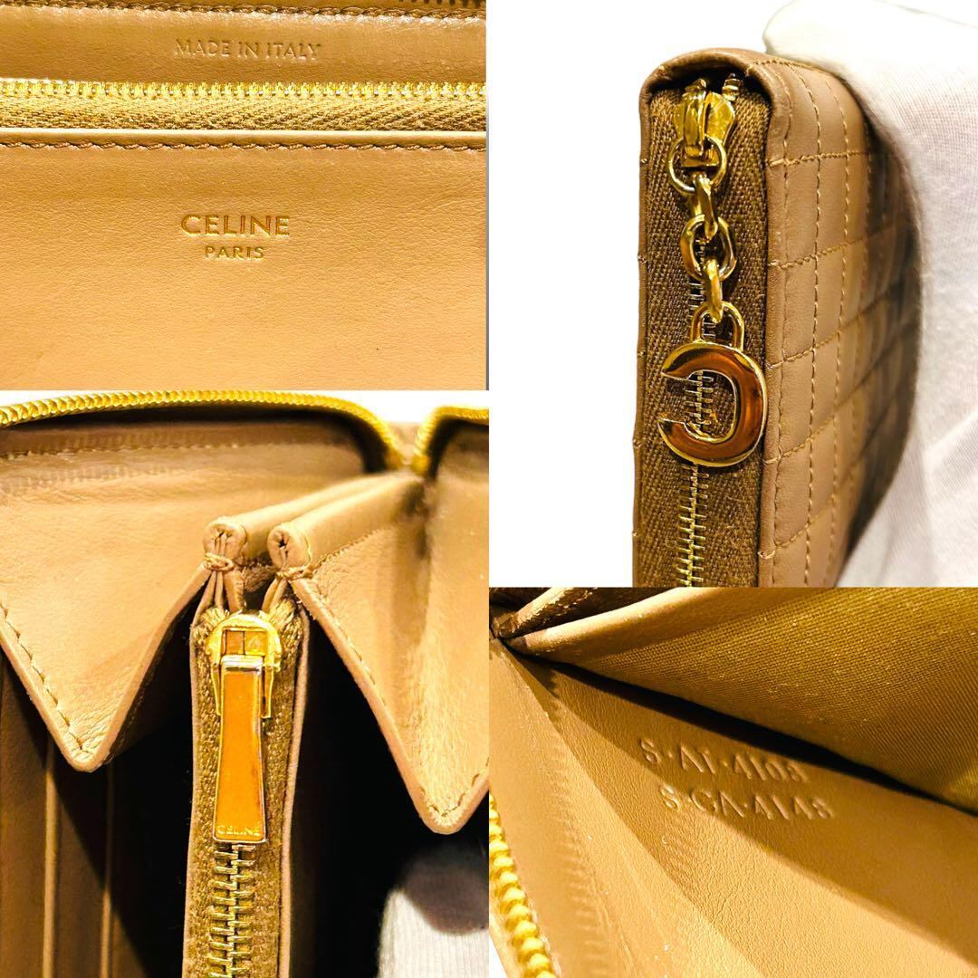 CELINE セリーヌ 長財布 ジッピー ラウンドファスナー チャーム お札入れ ゴールド 金具 キルティング ウォレット 美品