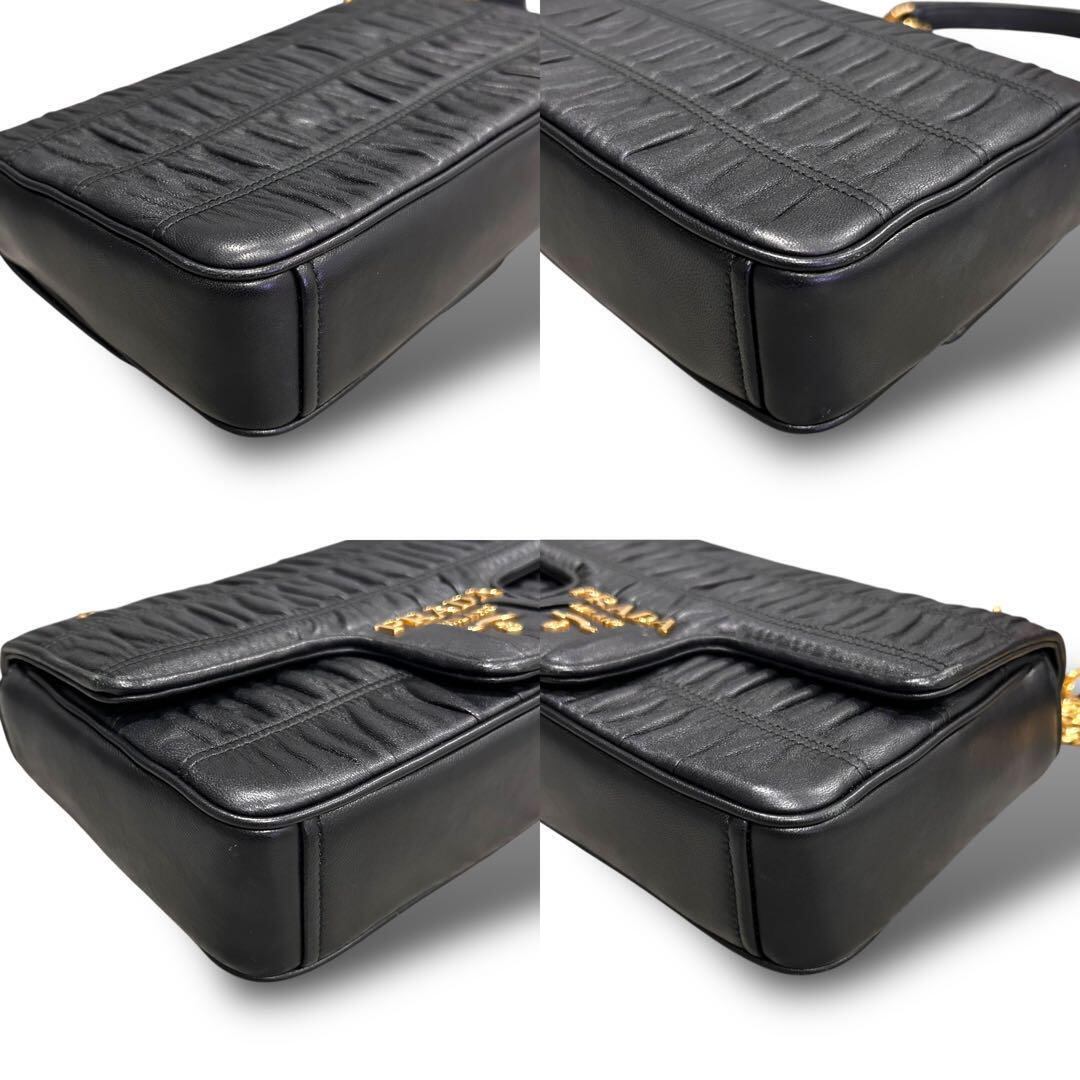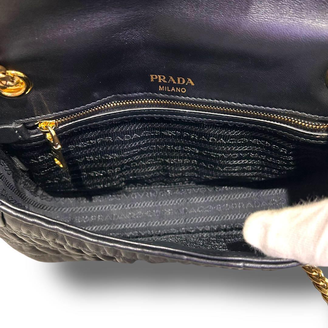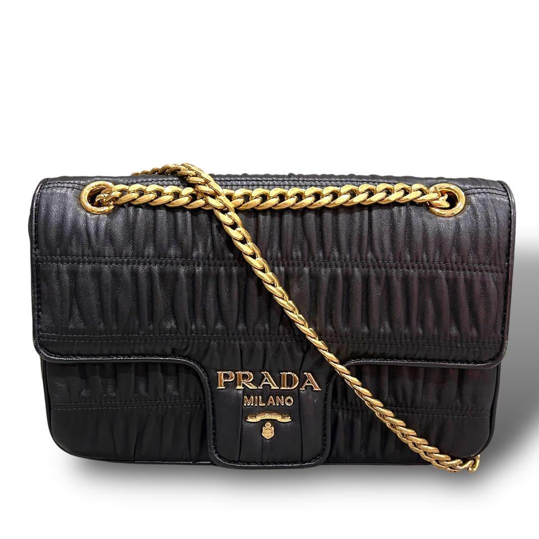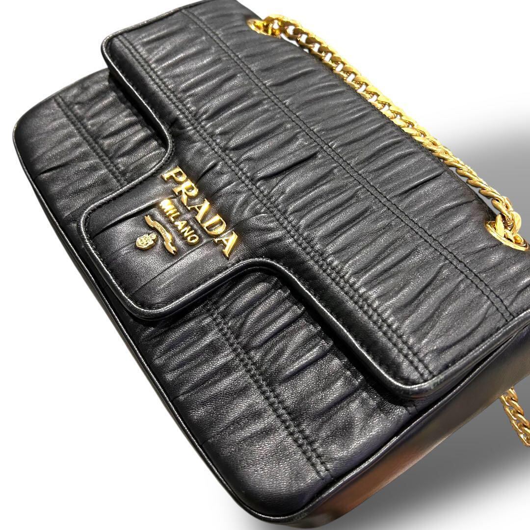 PRADA プラダ ナッパ チェーンショルダー ショルダーバッグ ゴールド金具 未使用 ギャランティーカード お洒落 オシャレ 普段使い ブラック レディース
