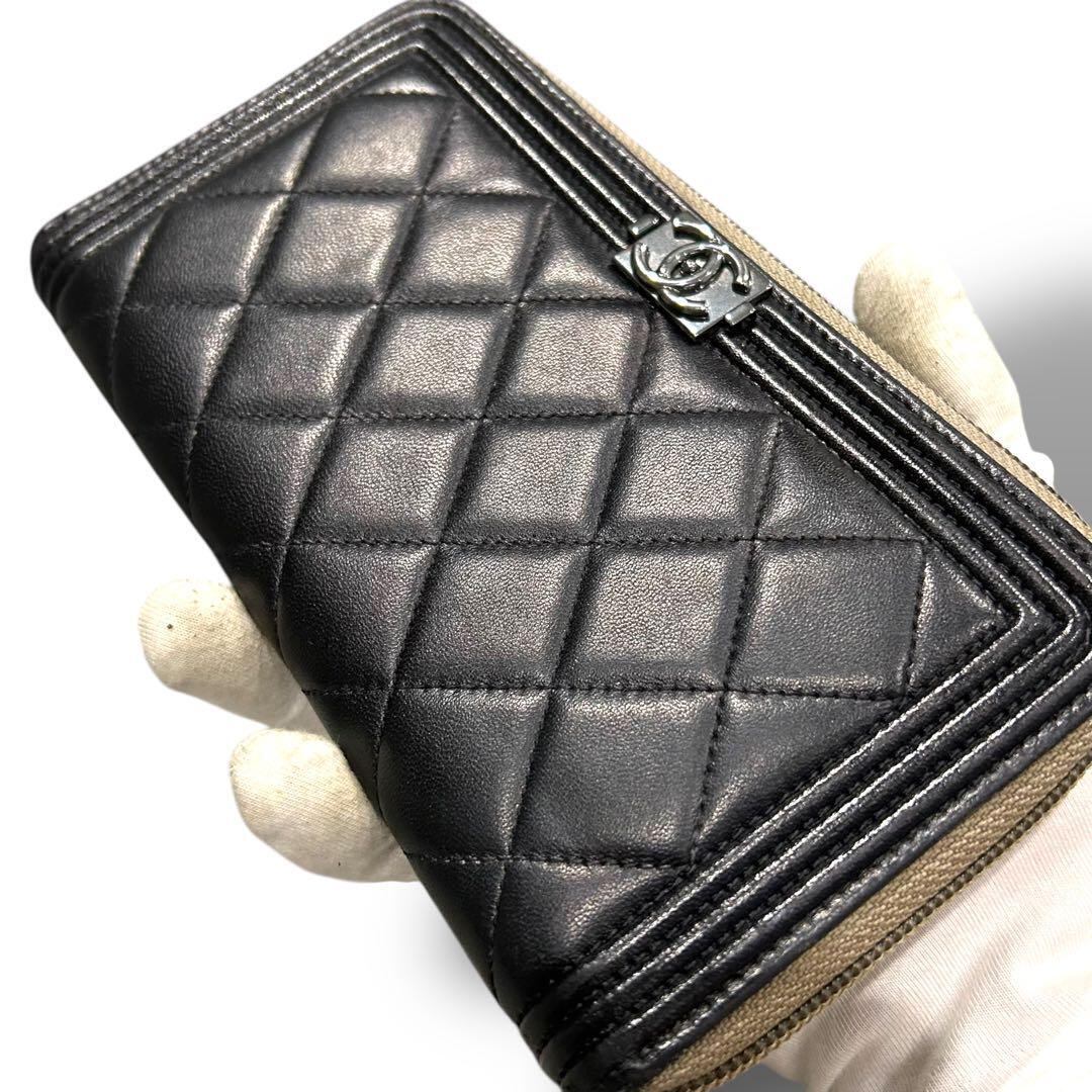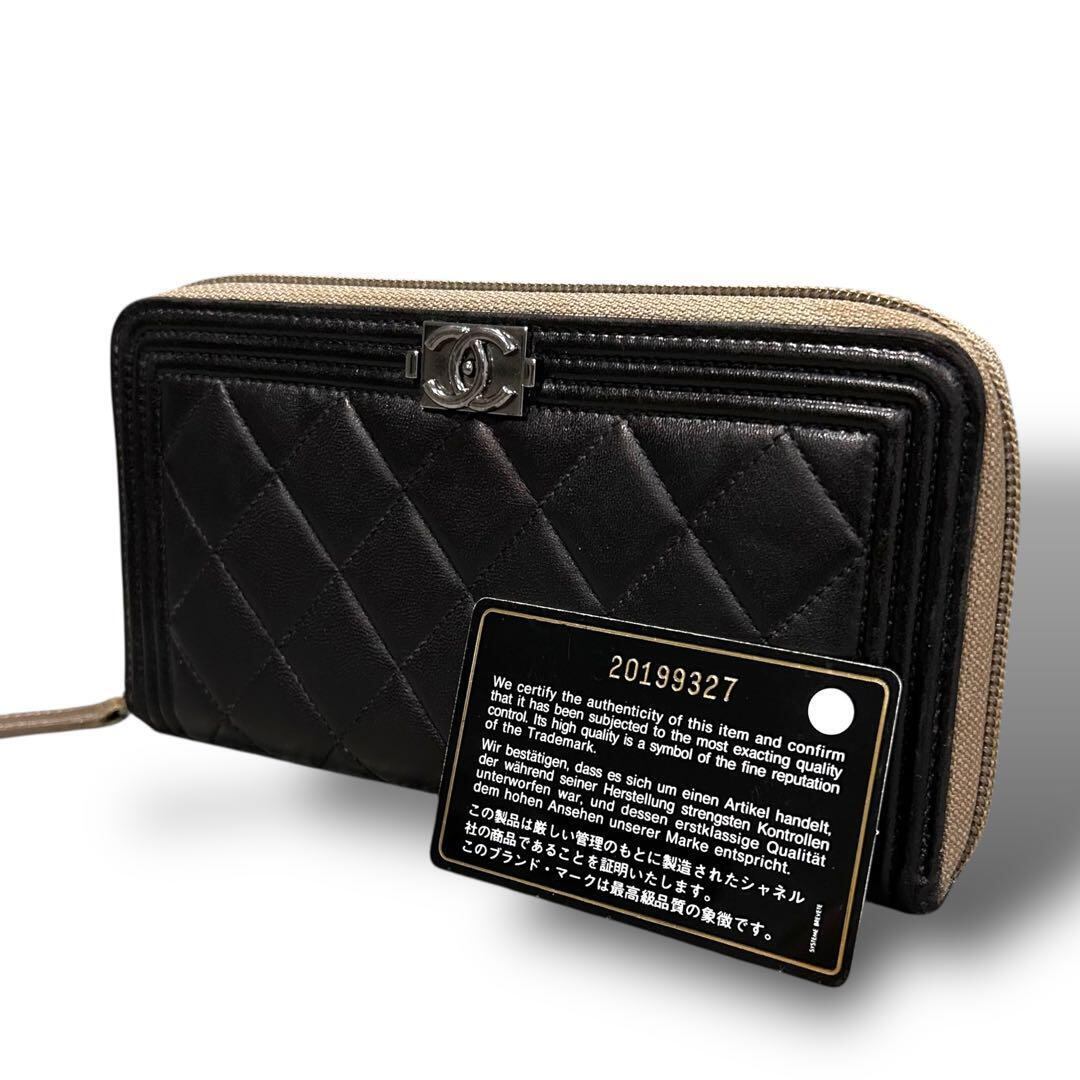 極美品 CHANEL シャネル ボーイシャネル 長財布 ラムスキン レディース