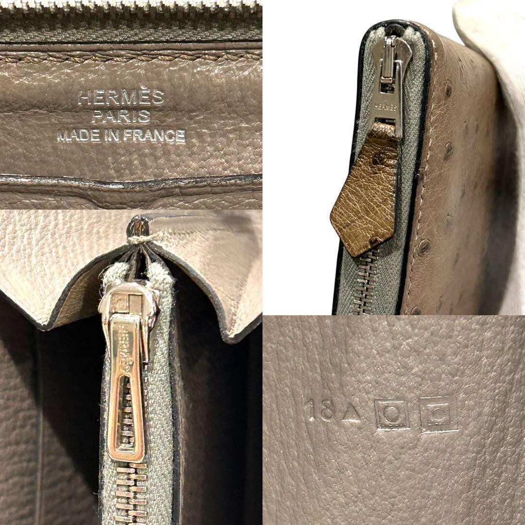 美品 HERMES エルメス アザップ オーストリッチ 長財布 ジッピー メンズ
