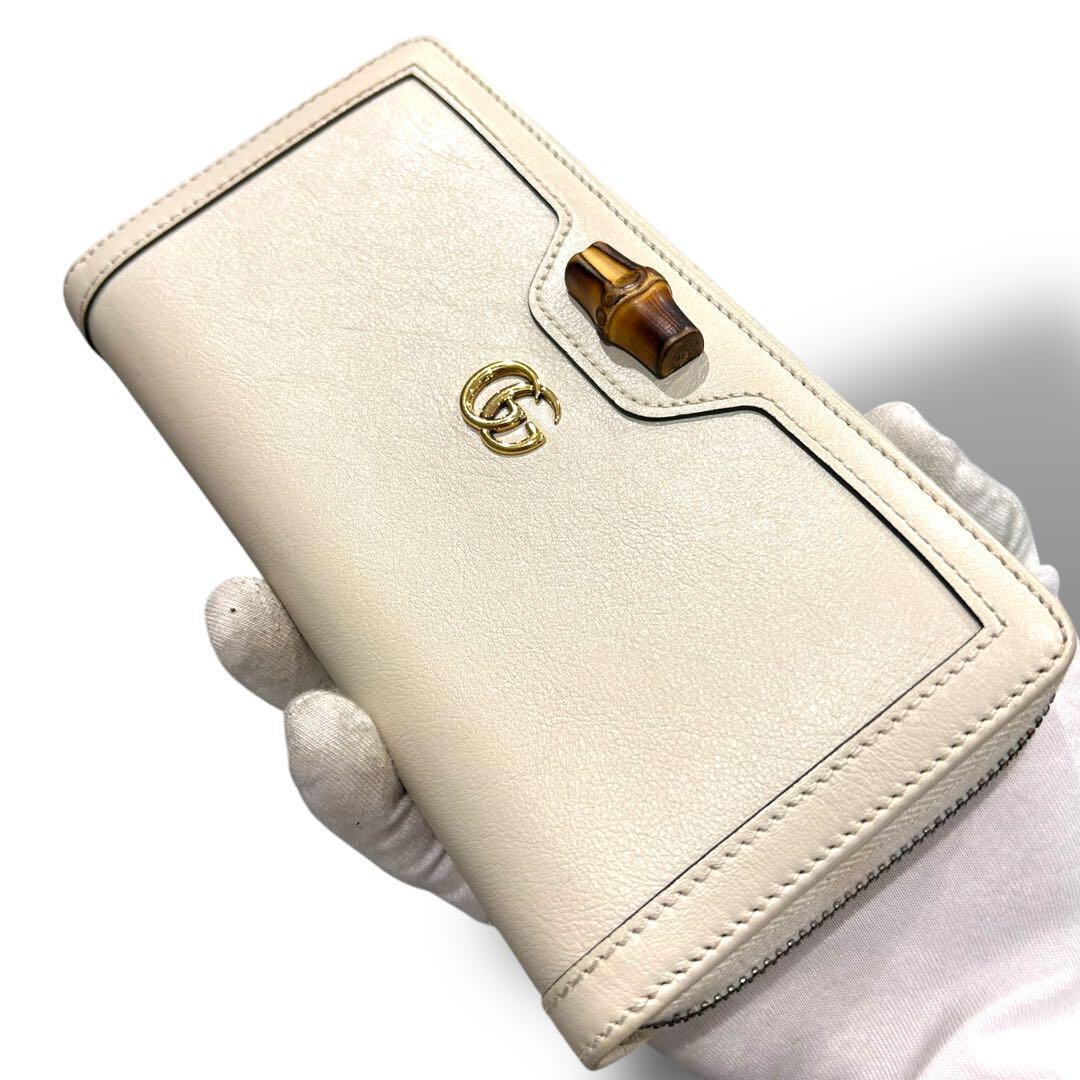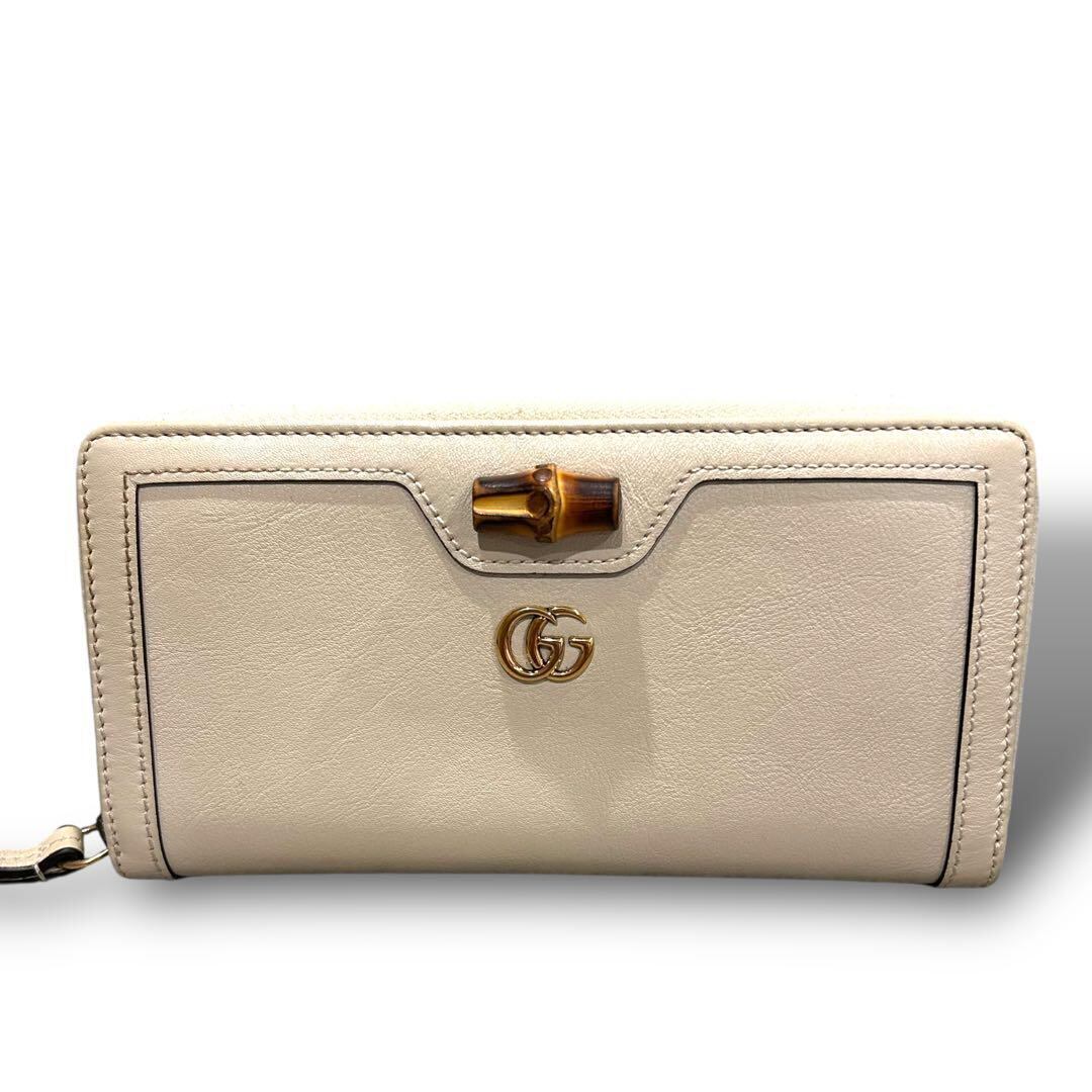 GUCCI グッチ ダイアナ バンブー ジッピーウォレット ラウンドファスナー 長財布 レディース お洒落 未使用 付属品 箱 GG 金具