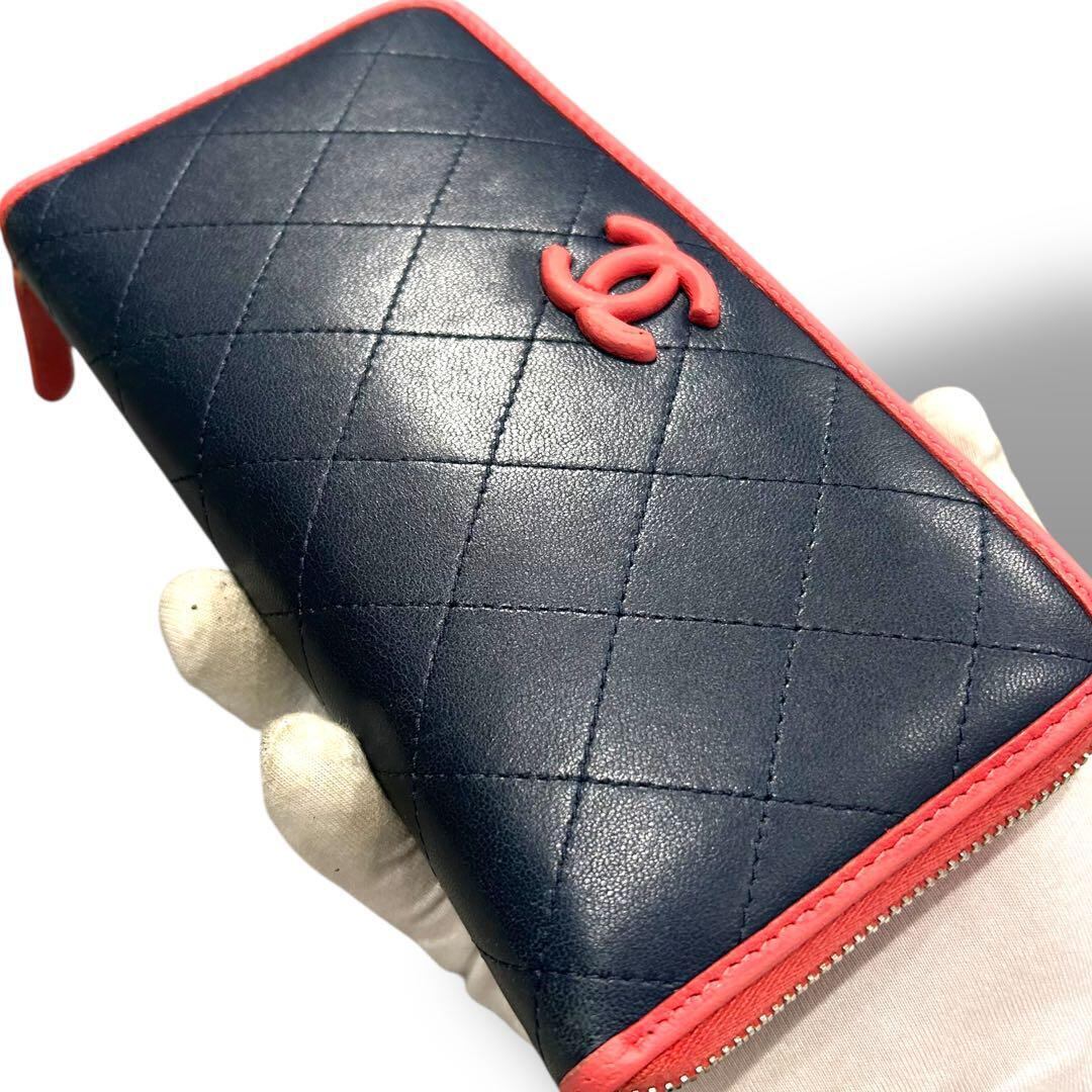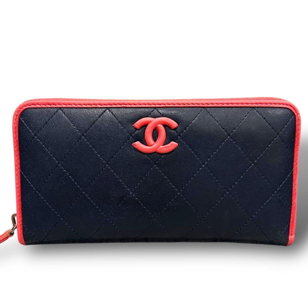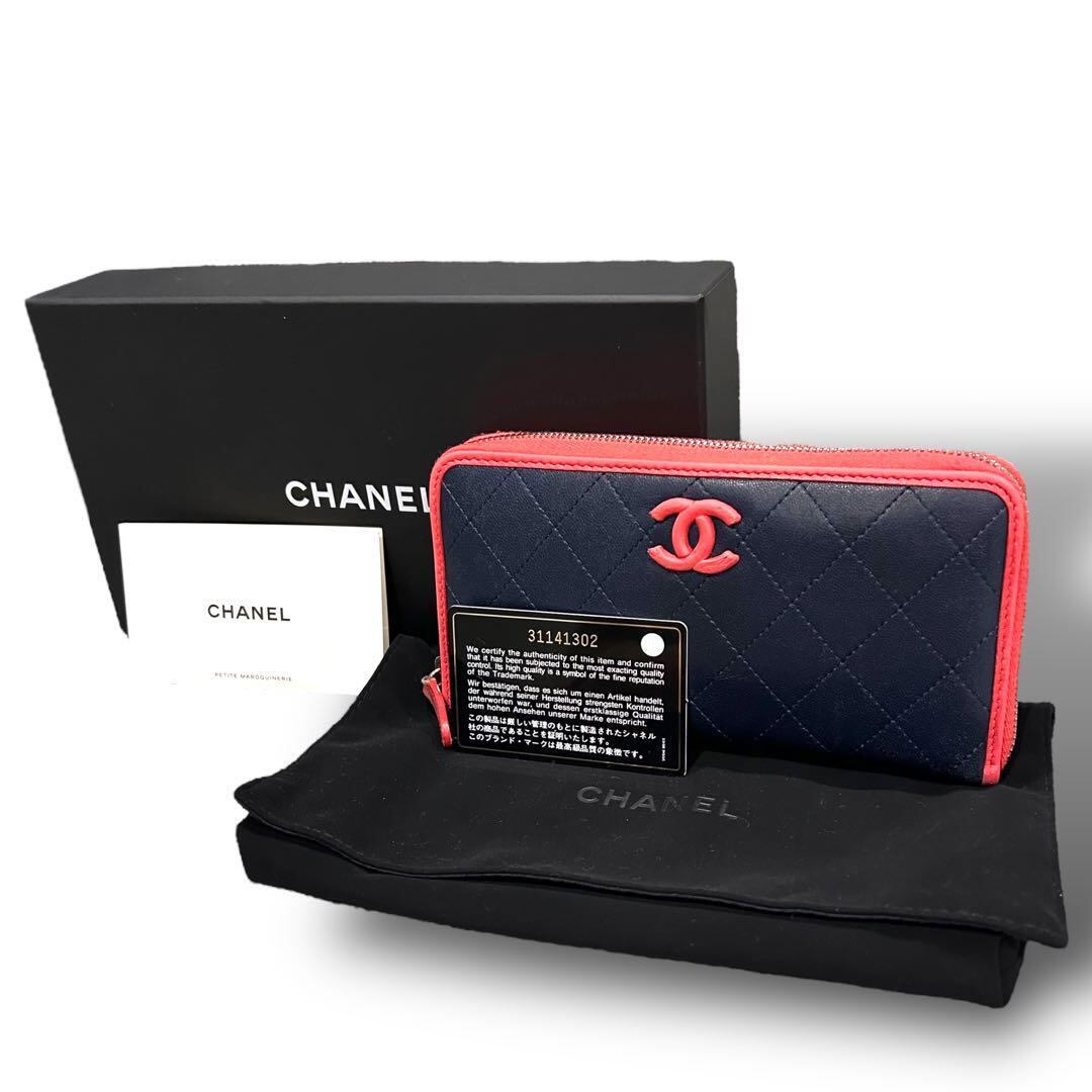 CHANEL シャネル ジッピーウォレット ラウンドファスナー 長財布 レディース お洒落 金具 ラムスキン マトラッセ バイカラー ココマーク