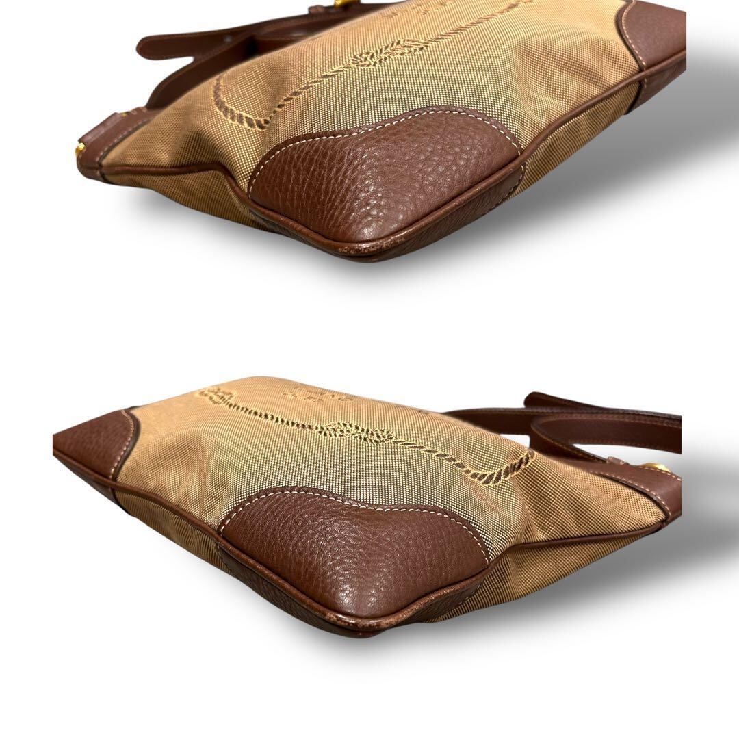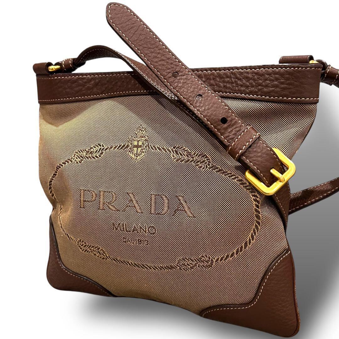 PRADA プラダ お洒落 オシャレ 普段使い ブラウン レディース メンズ ジャガード ショルダーバッグ 斜めがけ 肩がけ 極美品