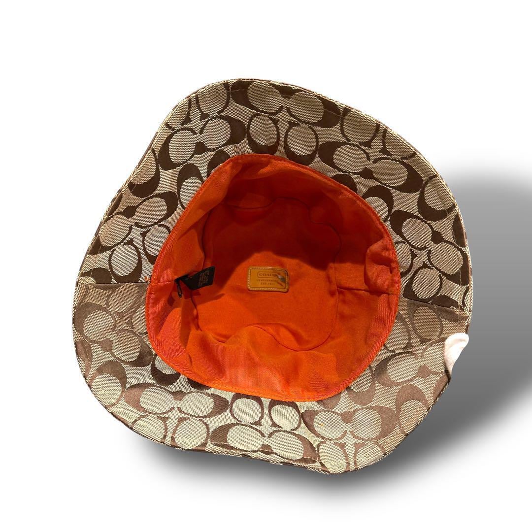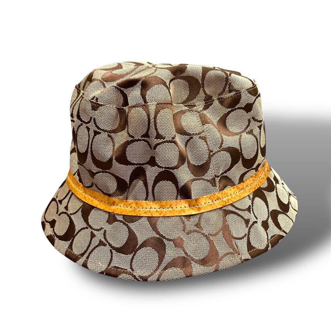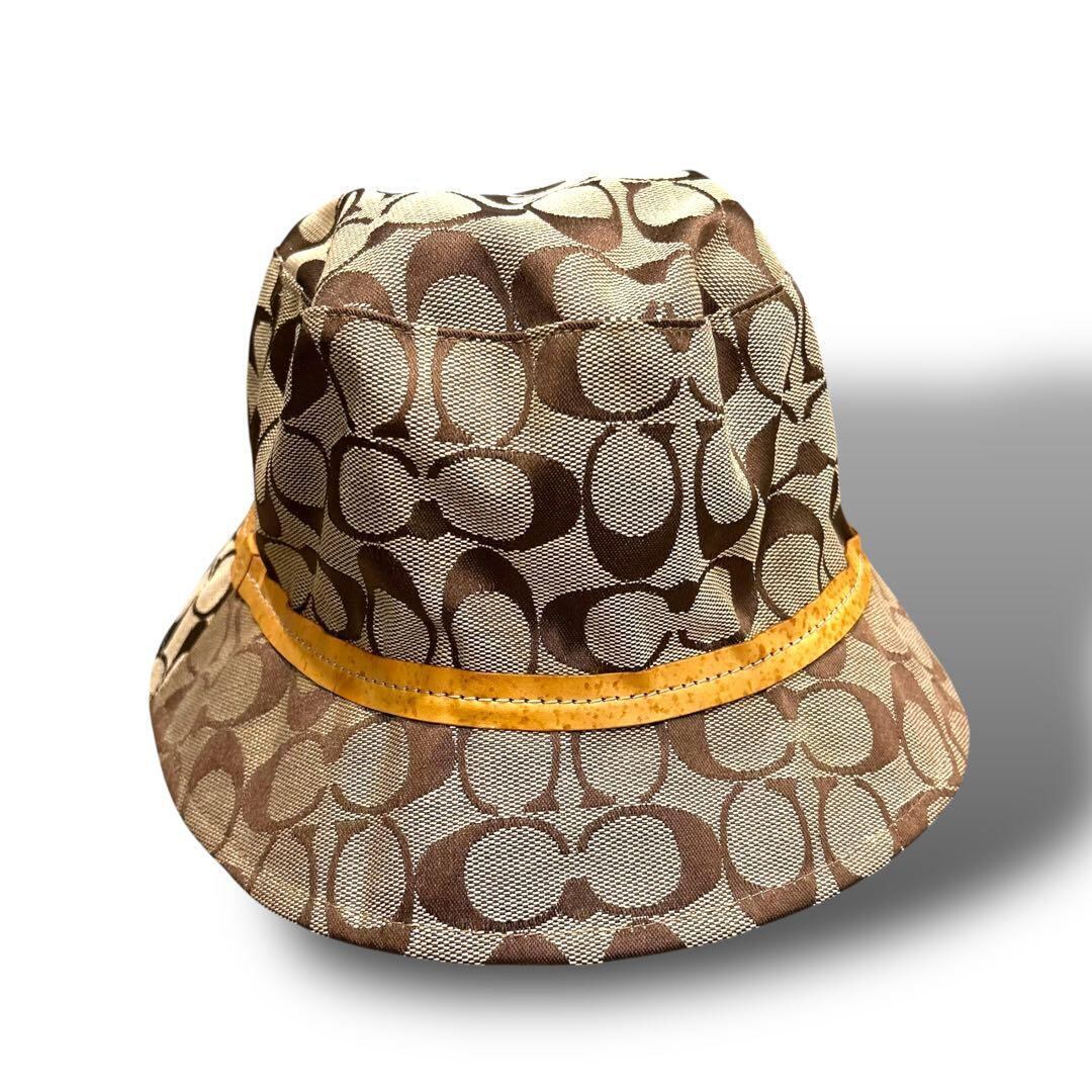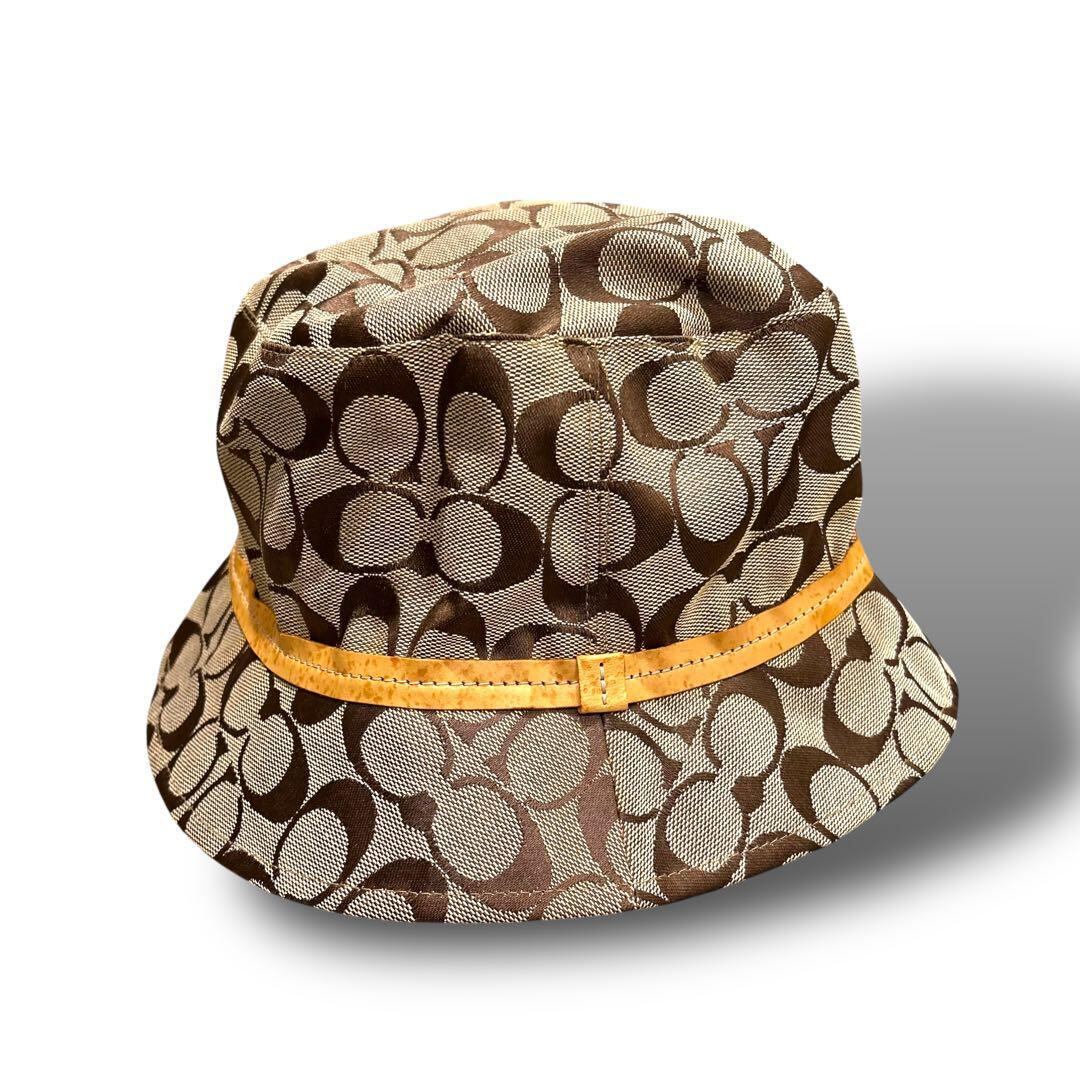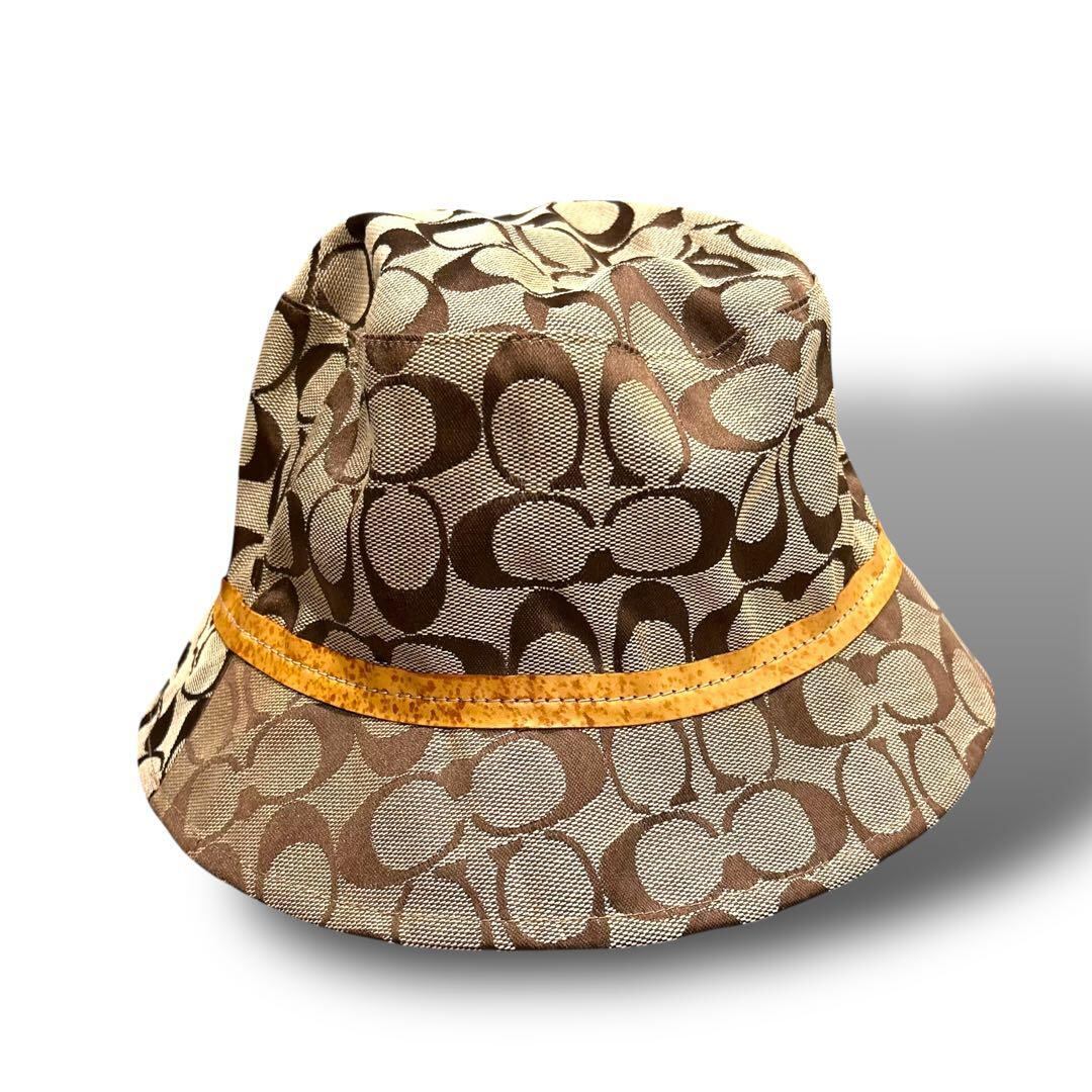 COACH コーチ シグネチャー 柄 キャップ バケットハット 帽子 ベージュ 日除け レディース お洒落 金具