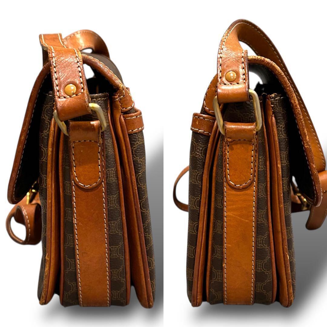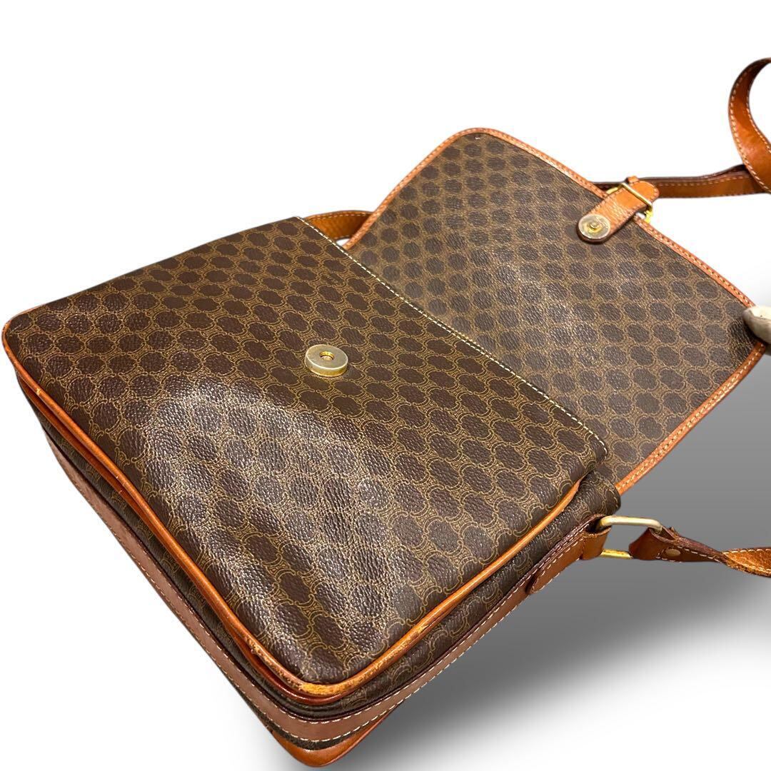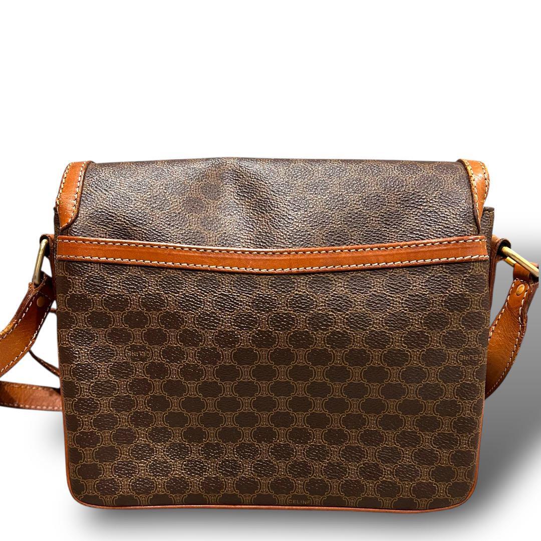CELINE セリーヌ ショルダーバッグ マカダム柄 ブラウン レザー 斜め掛け