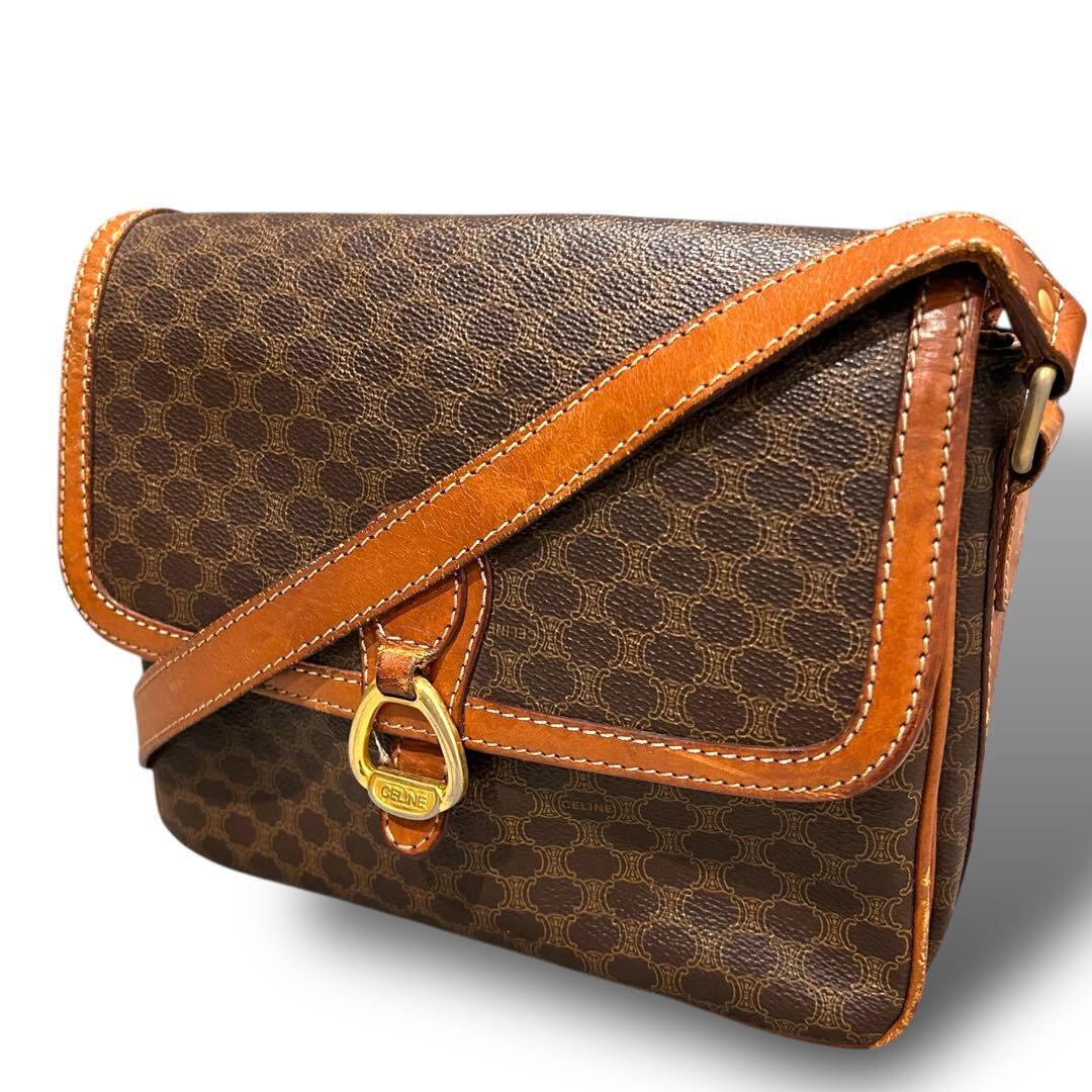 CELINE セリーヌ トリオンフ 柄 マカダム柄 ショルダーバッグ 斜め掛け サークル 金具 ゴールド お洒落 オシャレ 普段使い レディース メンズ 大容量