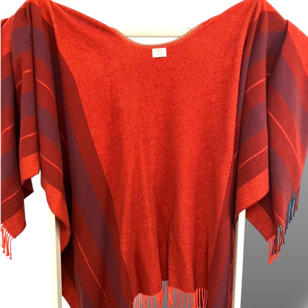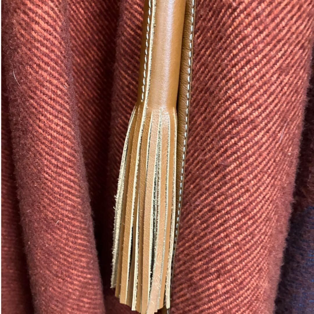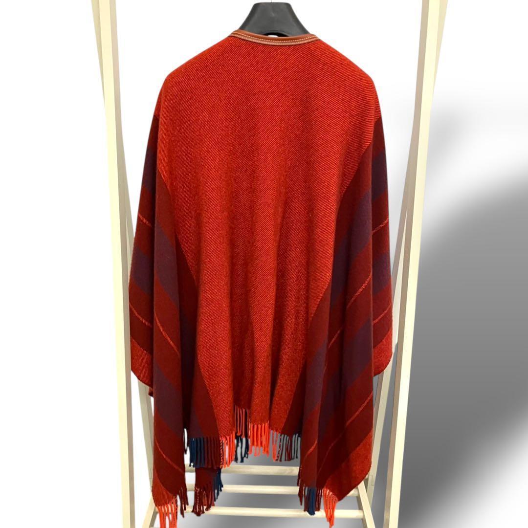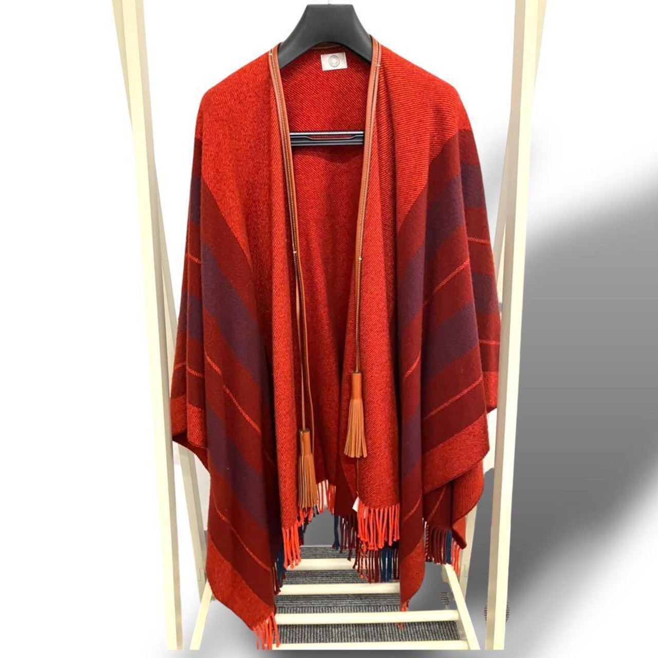美品 HERMES エルメス ポンチョ カシミヤ ウール タッセル フリンジ 赤