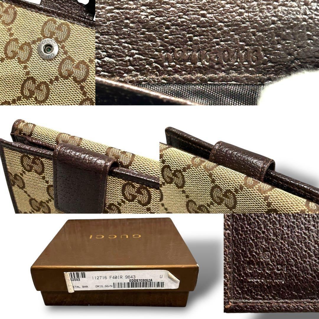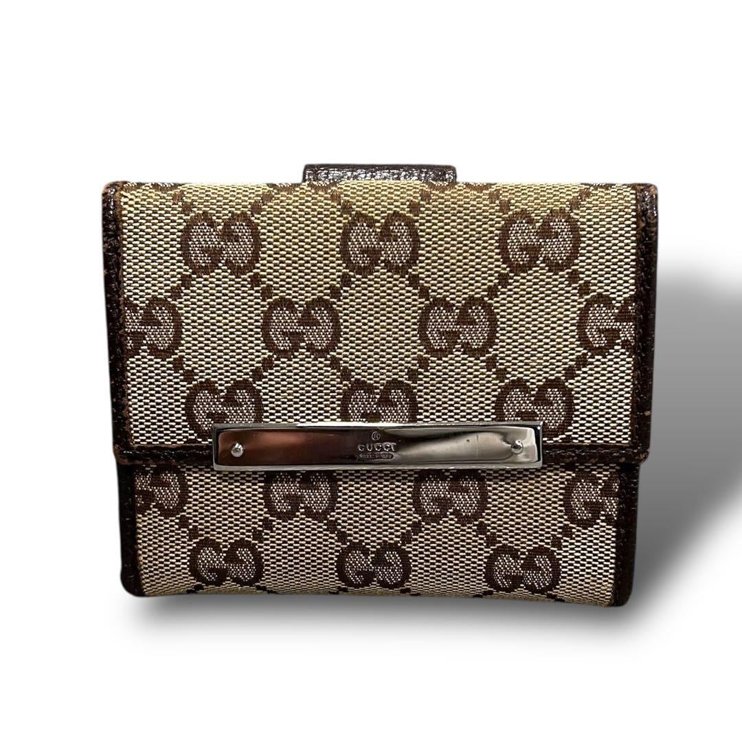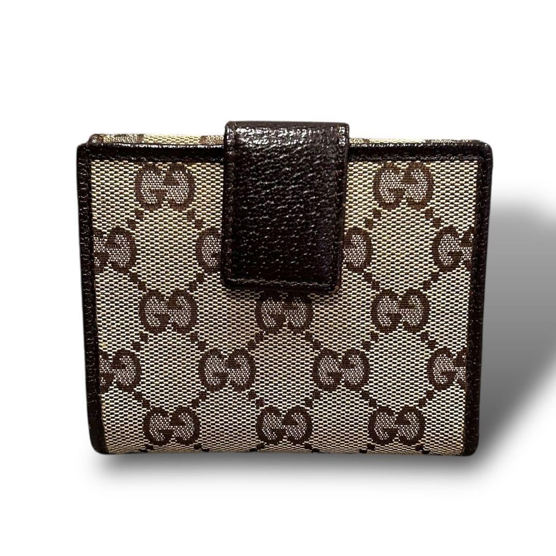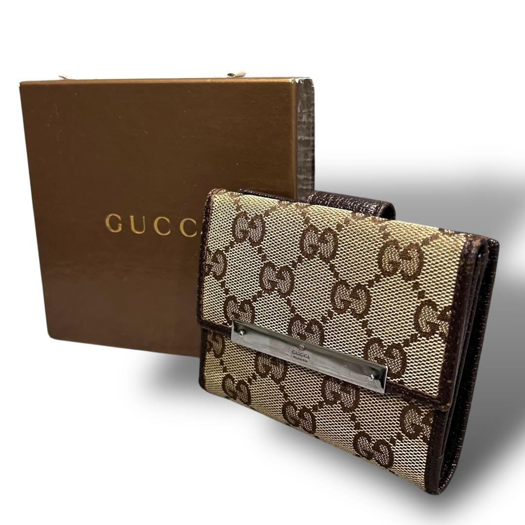 GUCCI グッチ 二つ折り 財布 コンパクト キャンバス ブラウン ミニ レディース お洒落 付属品 箱 GG 金具