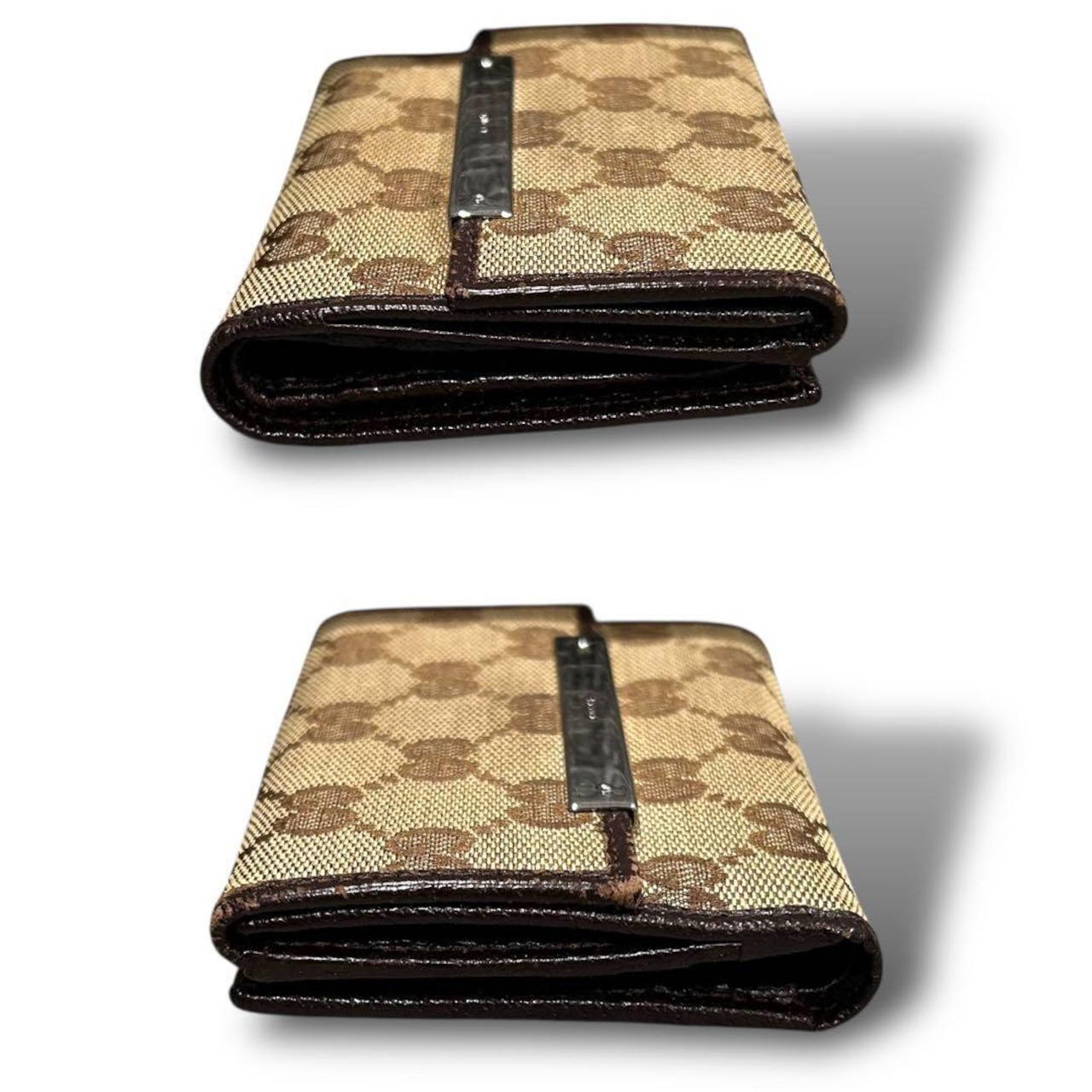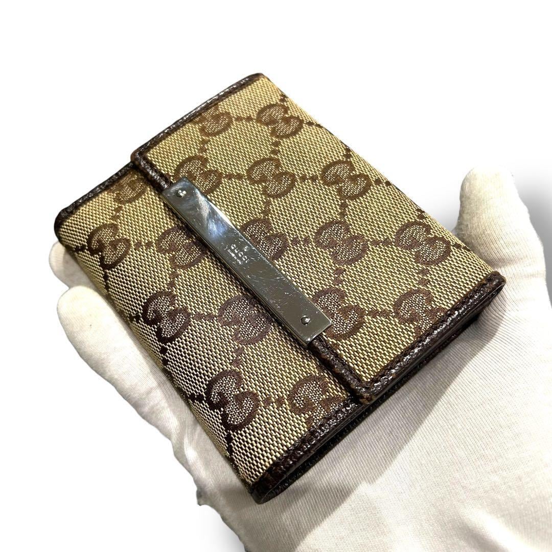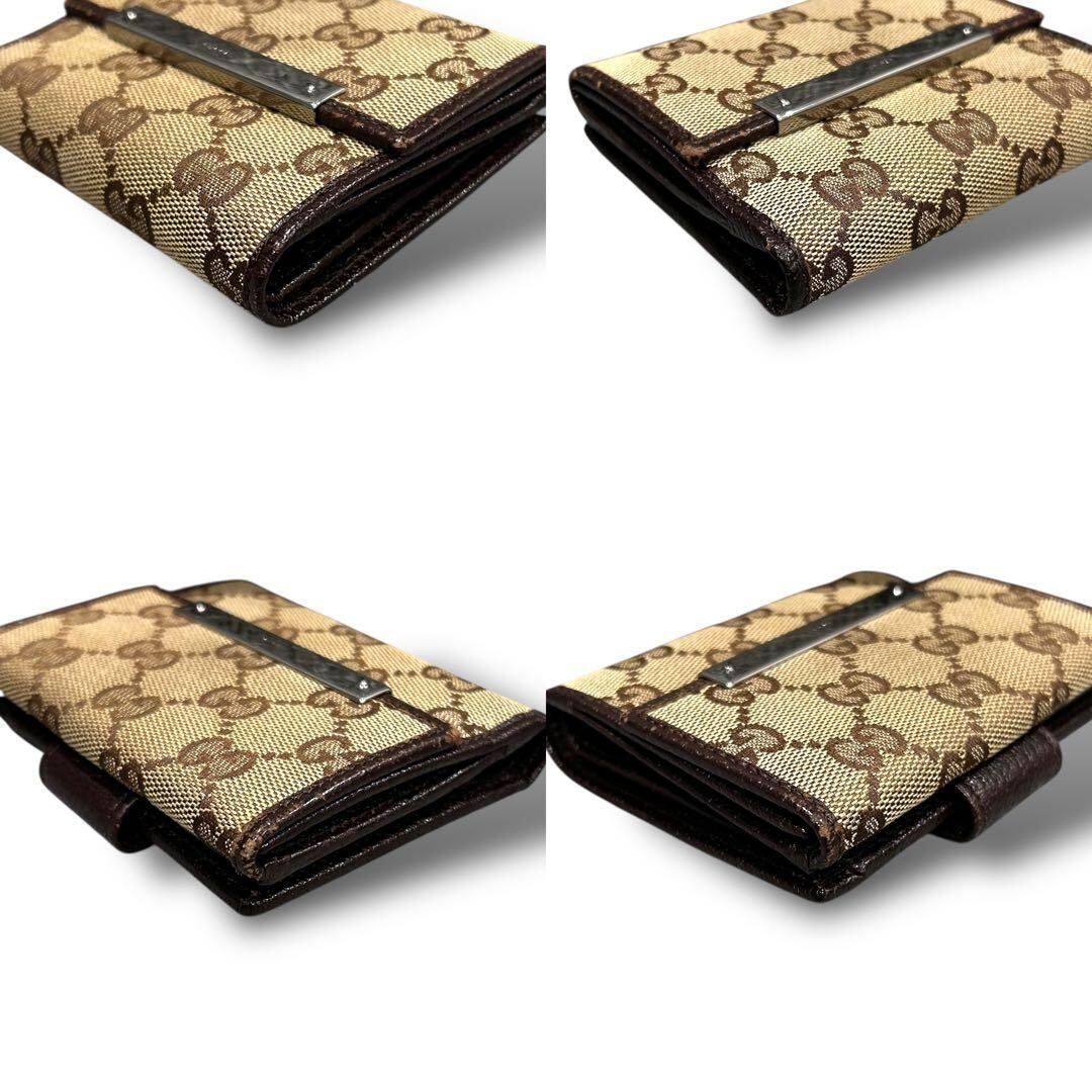 GUCCI グッチ 二つ折り 財布 コンパクト キャンバス ブラウン ミニ レディース お洒落 付属品 箱 GG 金具