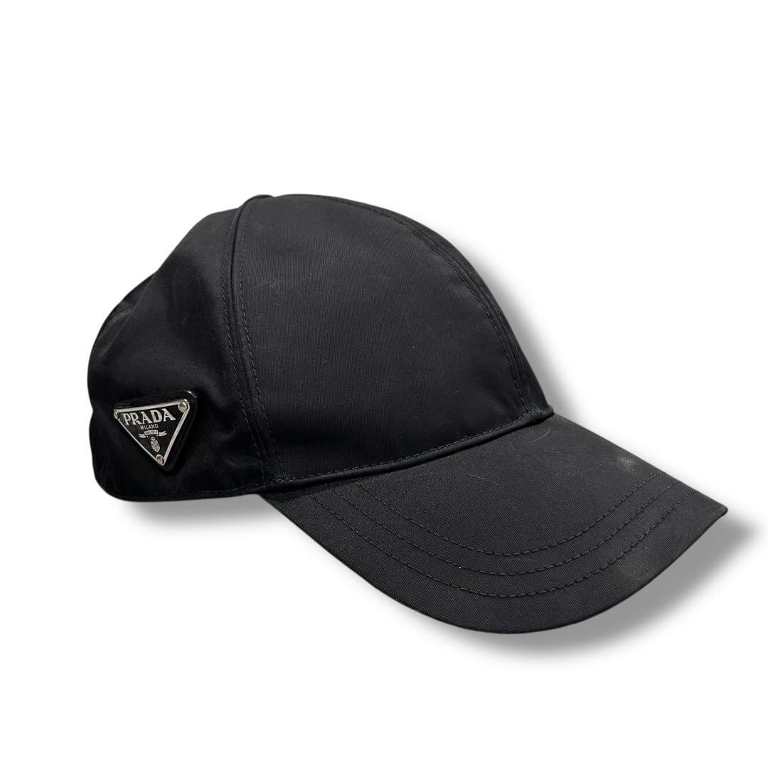 極美品 PRADA プラダ ベースボール キャップ 三角ロゴ ブラック ナイロン プレート