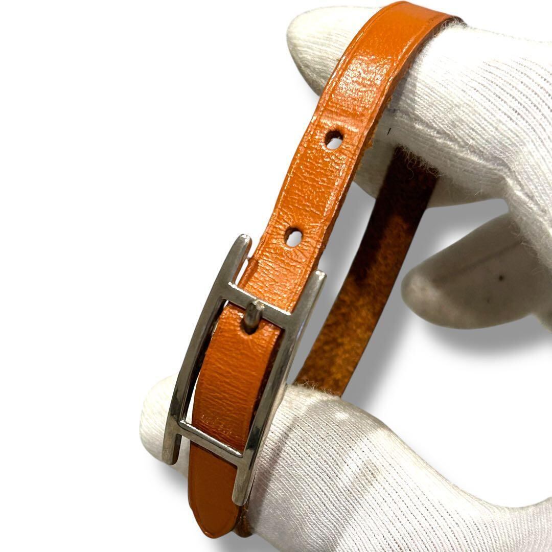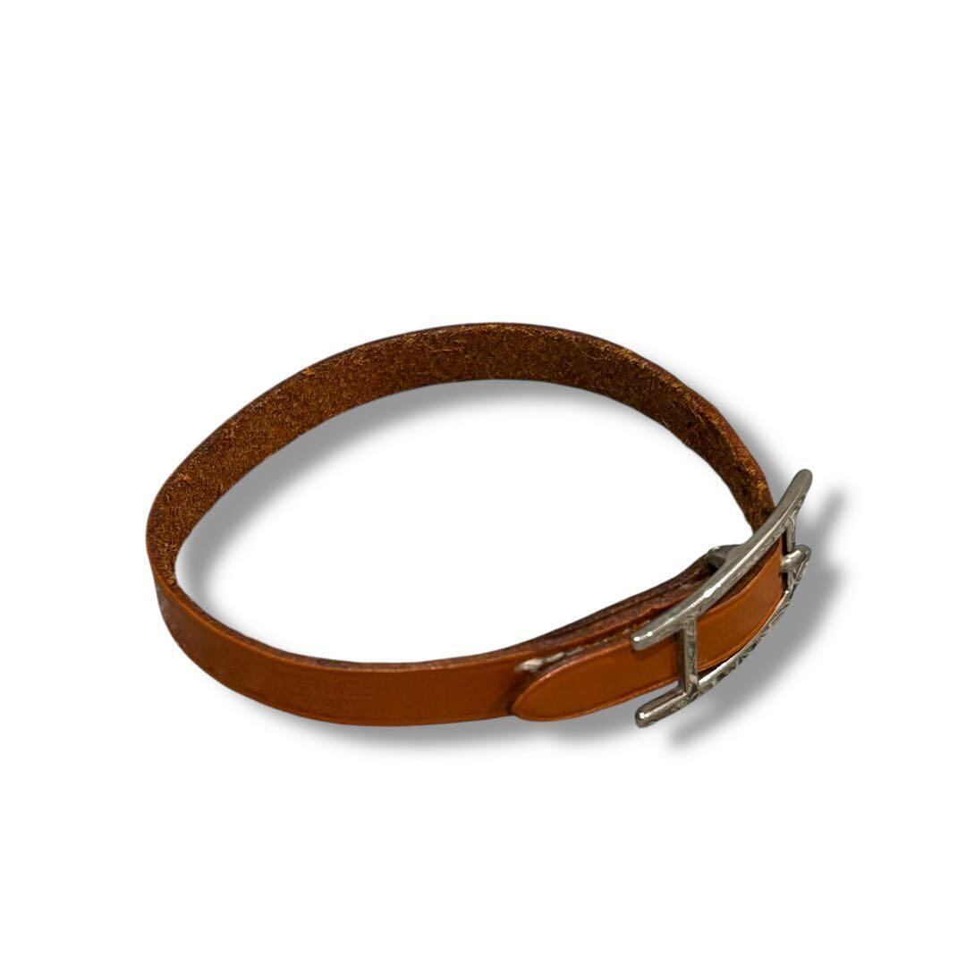 美品 HERMES エルメス ブレスレット バングル アピ レディース メンズ レザー シルバー金具