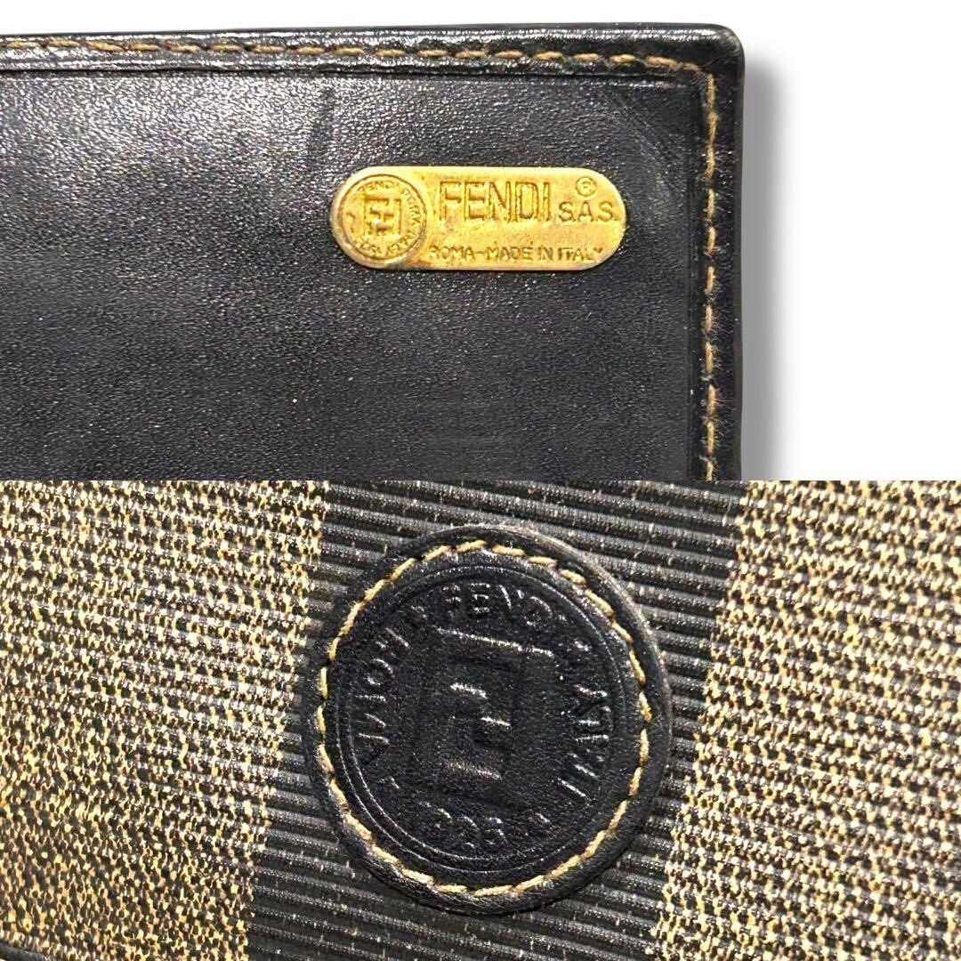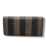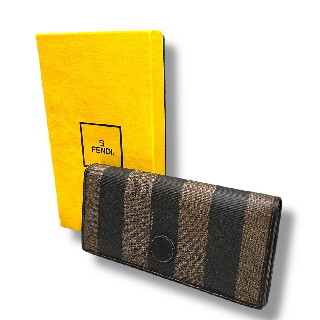 美品 FENDI フェンディ 長財布 ペカン ストライプ メンズ レディース