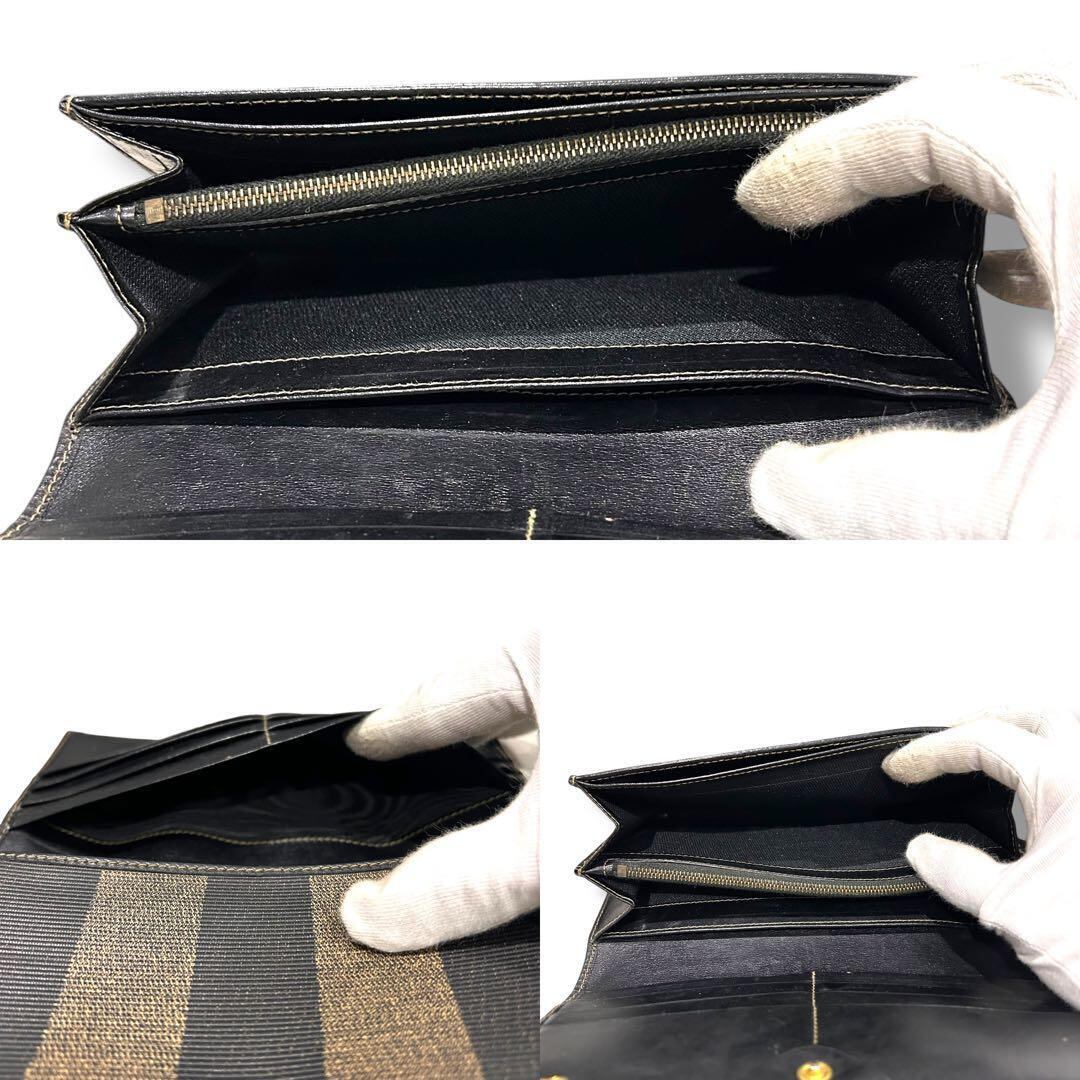 フェンディ FENDI ペカン柄 長財布 ストライプ 小銭入れ お洒落 オシャレ 普段使い ブラック レディース メンズ