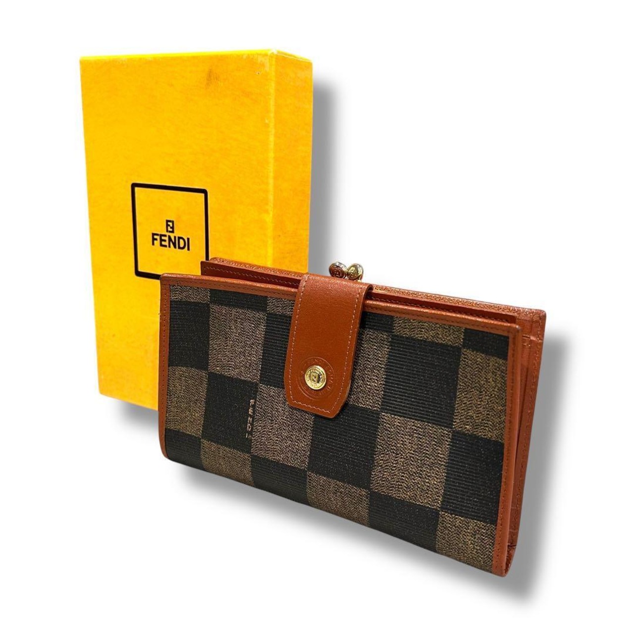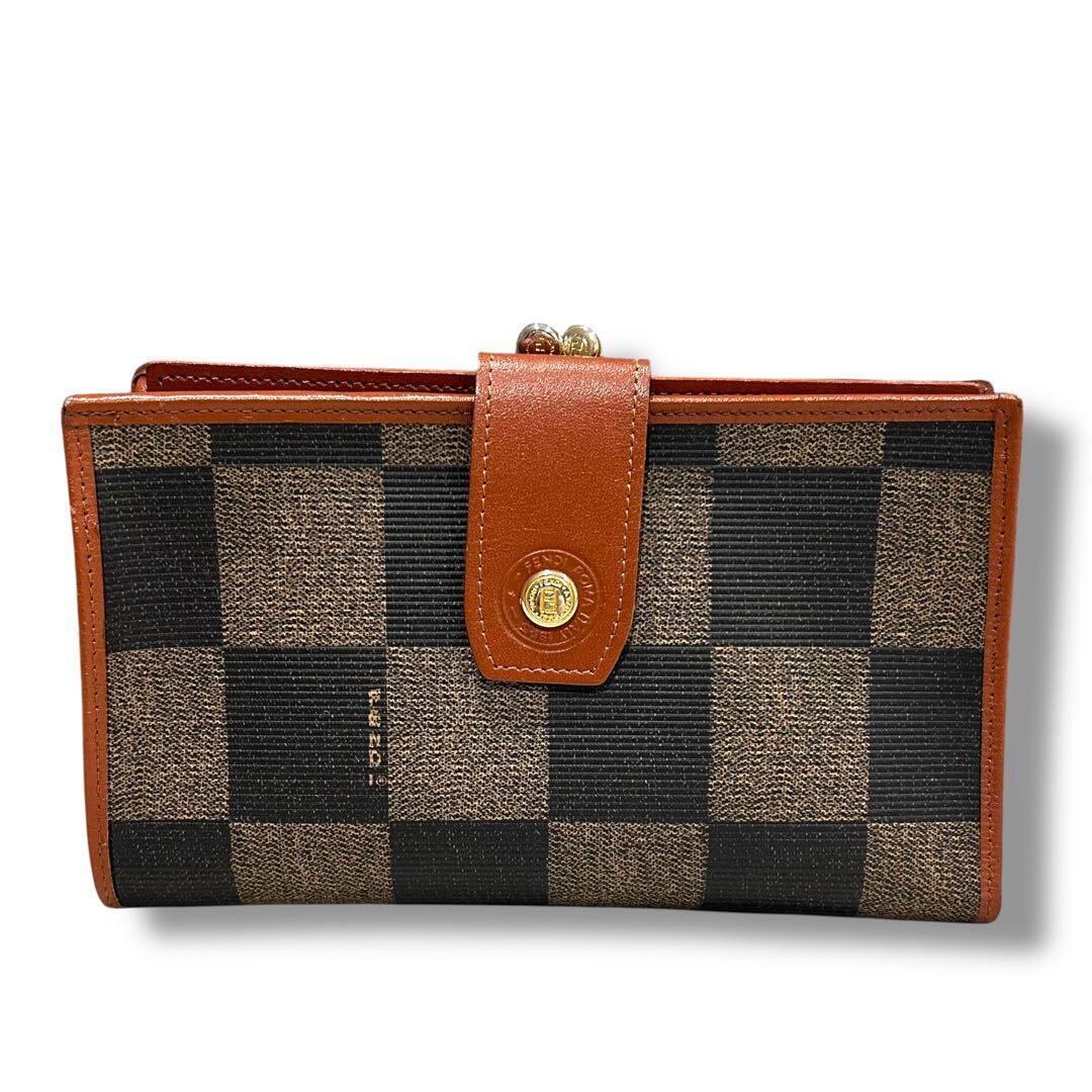 極美品 FENDI フェンディ ペカン柄 折り財布 二つ折り がま口 レディース