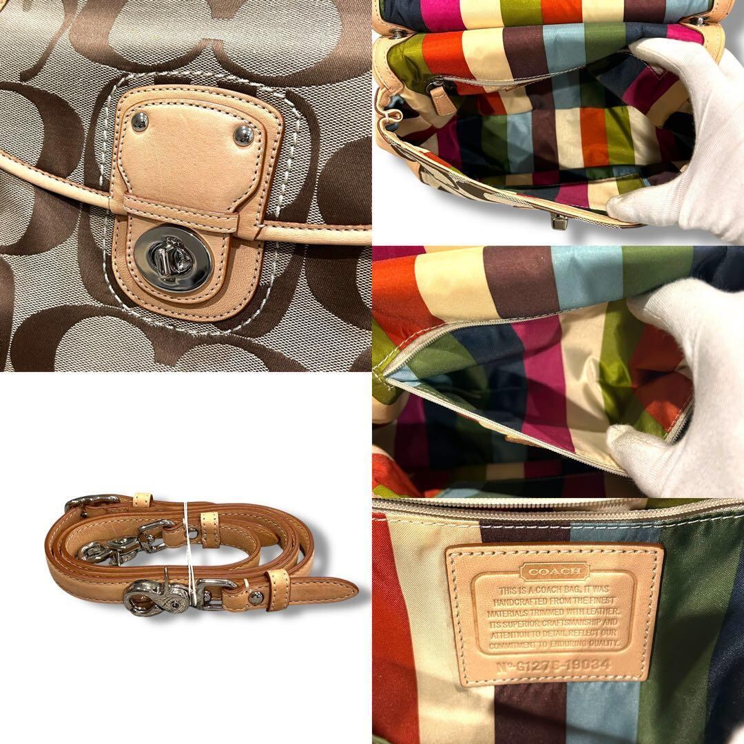 極美品 COACH コーチ 2way ハンドバッグ ショルダー シグネチャー柄 斜めかけ ベージュ レディース