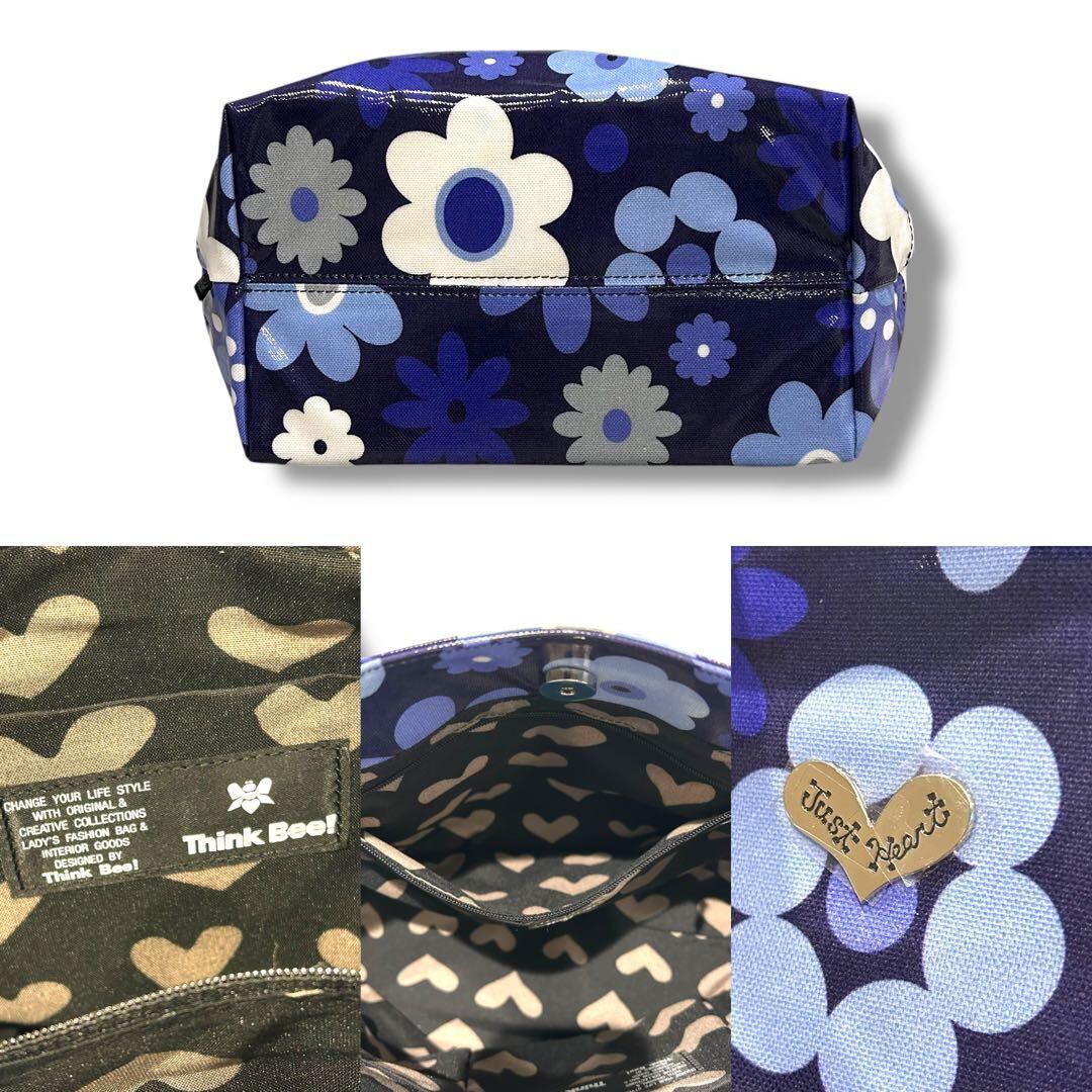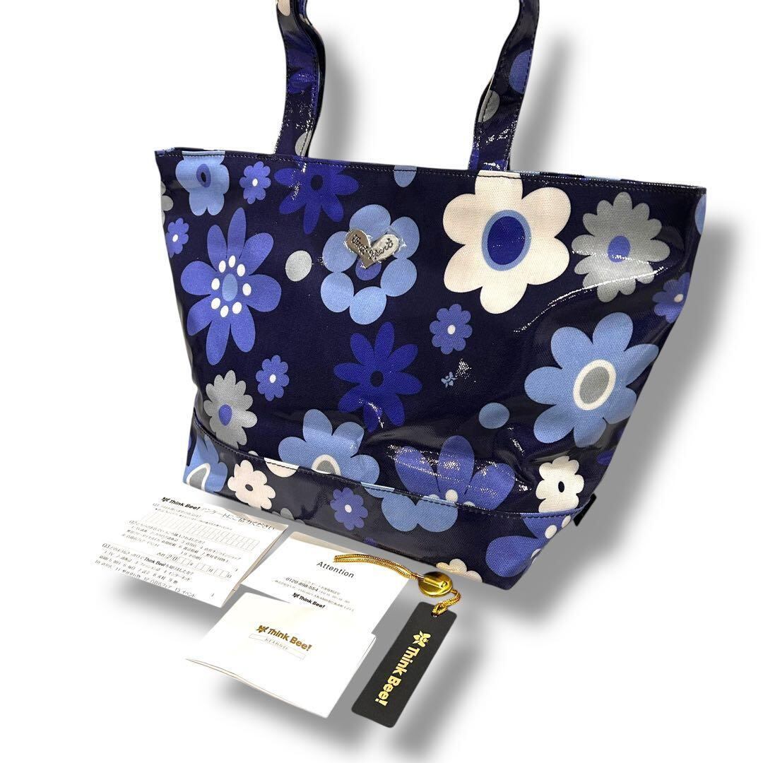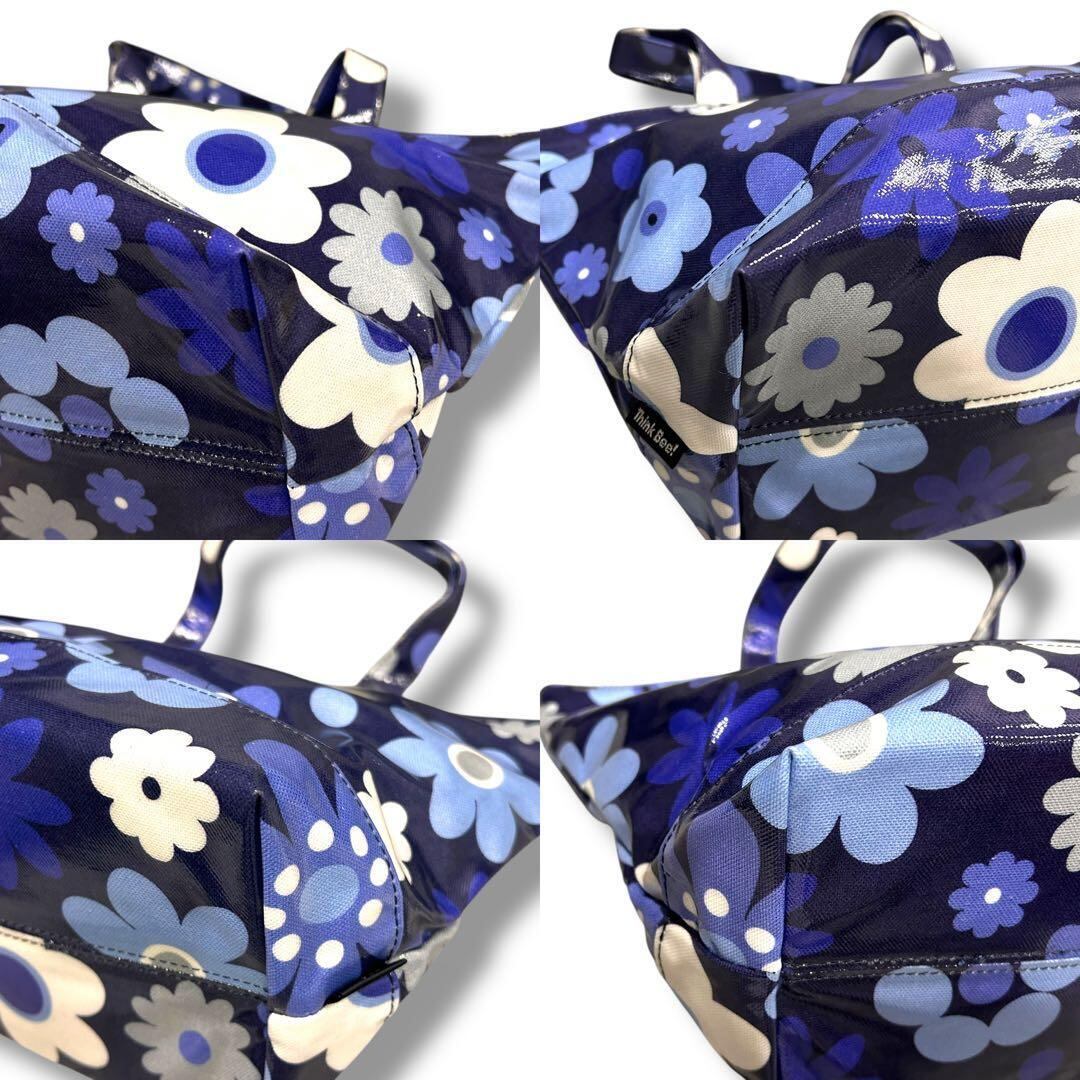 美品 ThinkBee! シンクビー トートバッグ 大容量 A4収納 レディース 花柄 ブルー