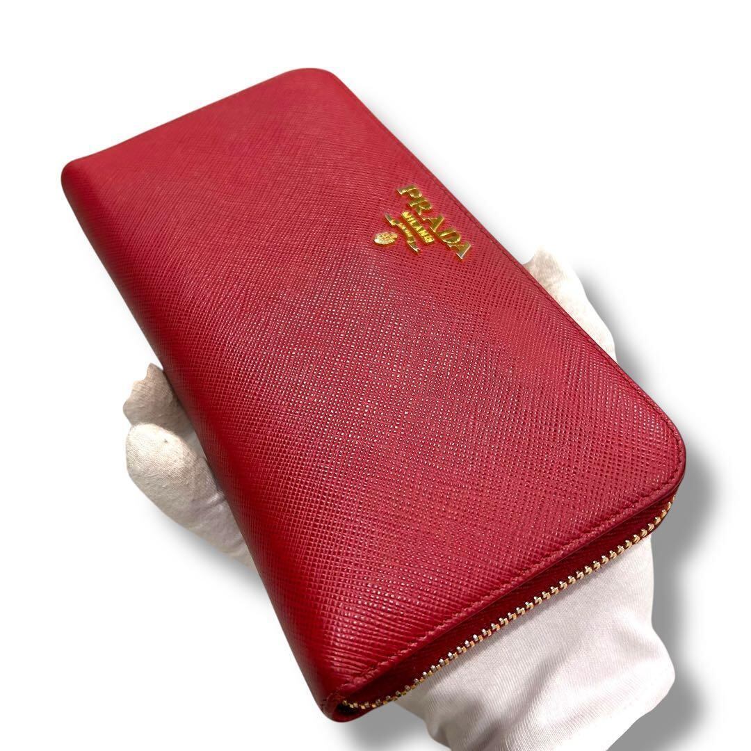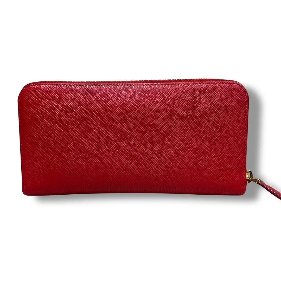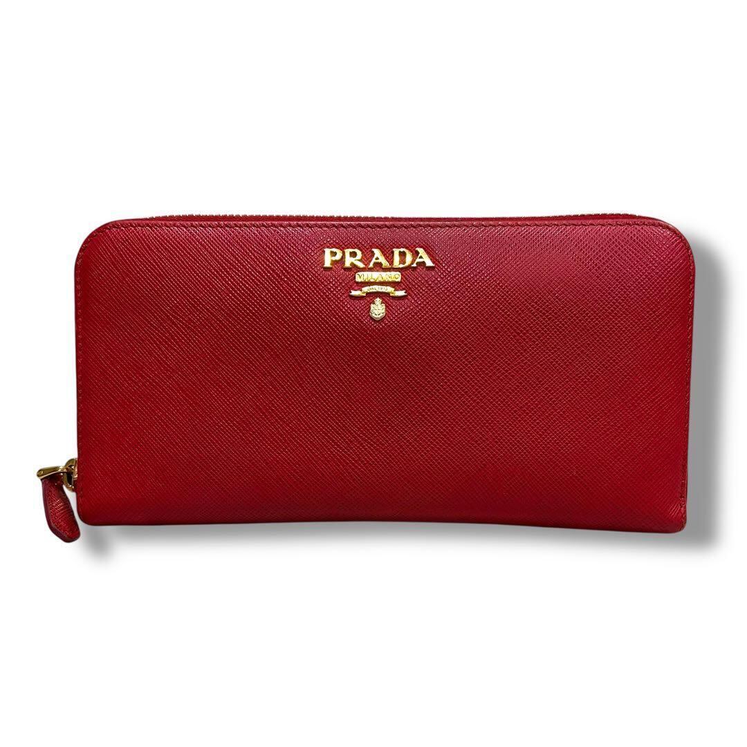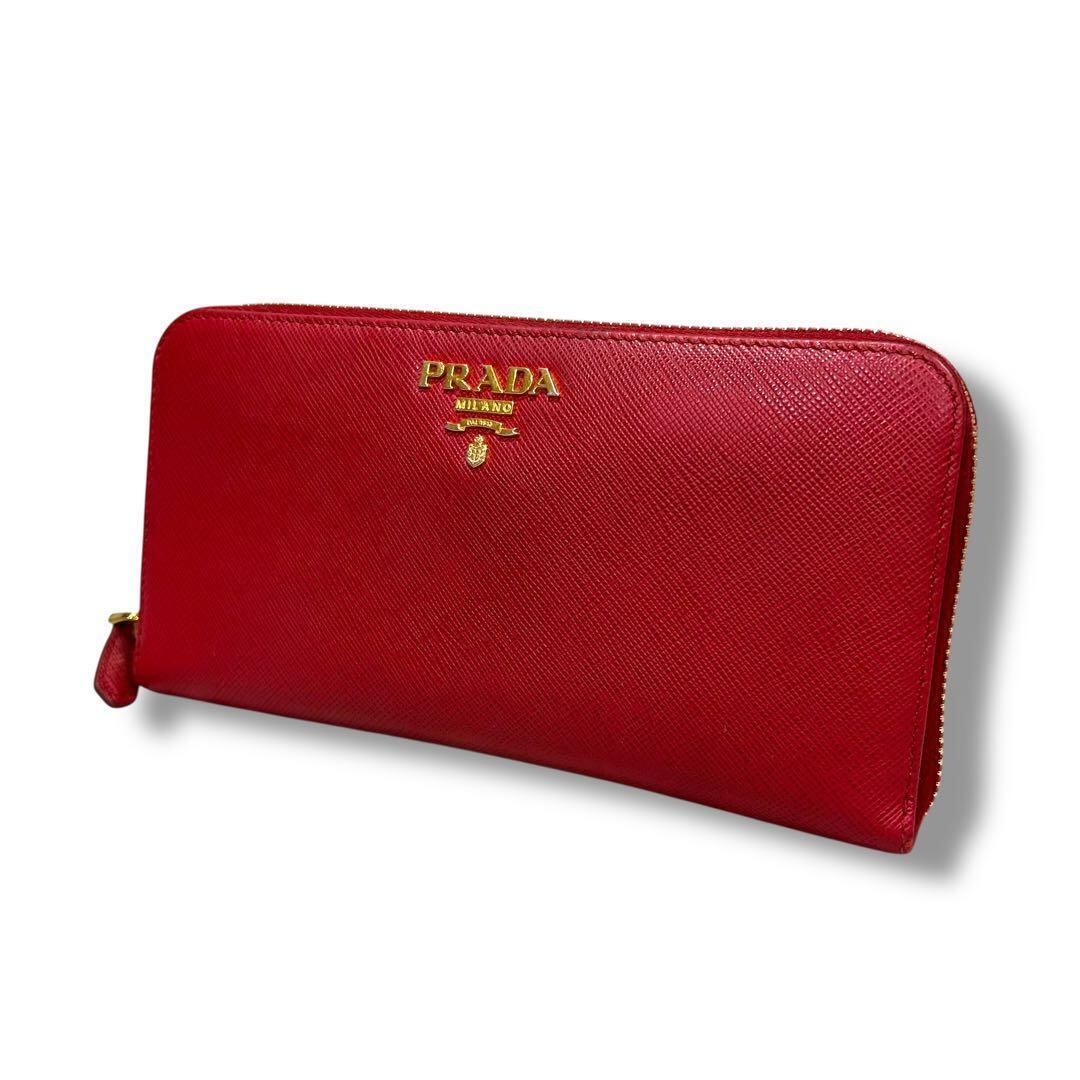 極美品 PRADA プラダ サフィアーノ 長財布 ジッピー レッド レディース ラウンドファスナー レディース