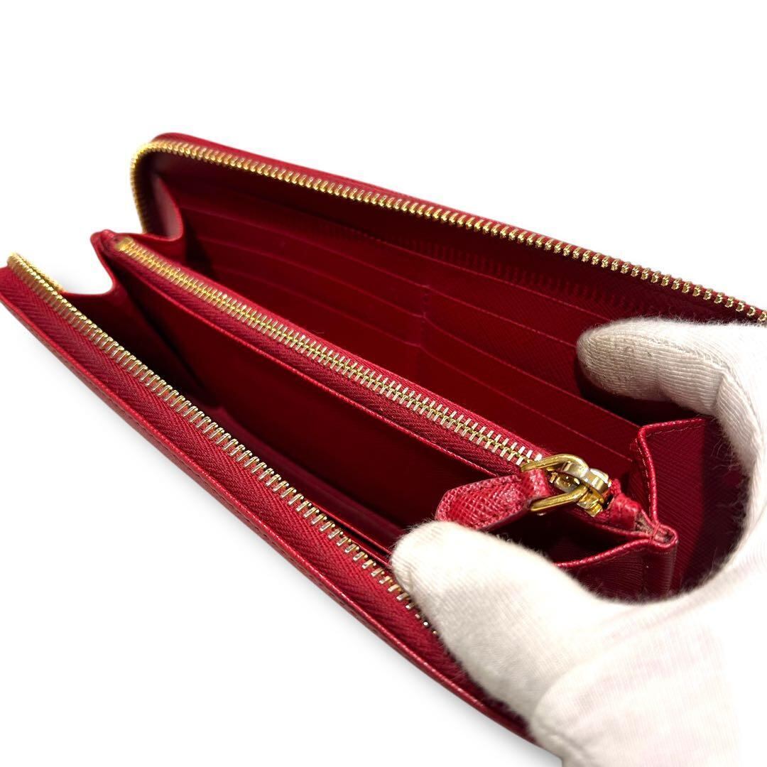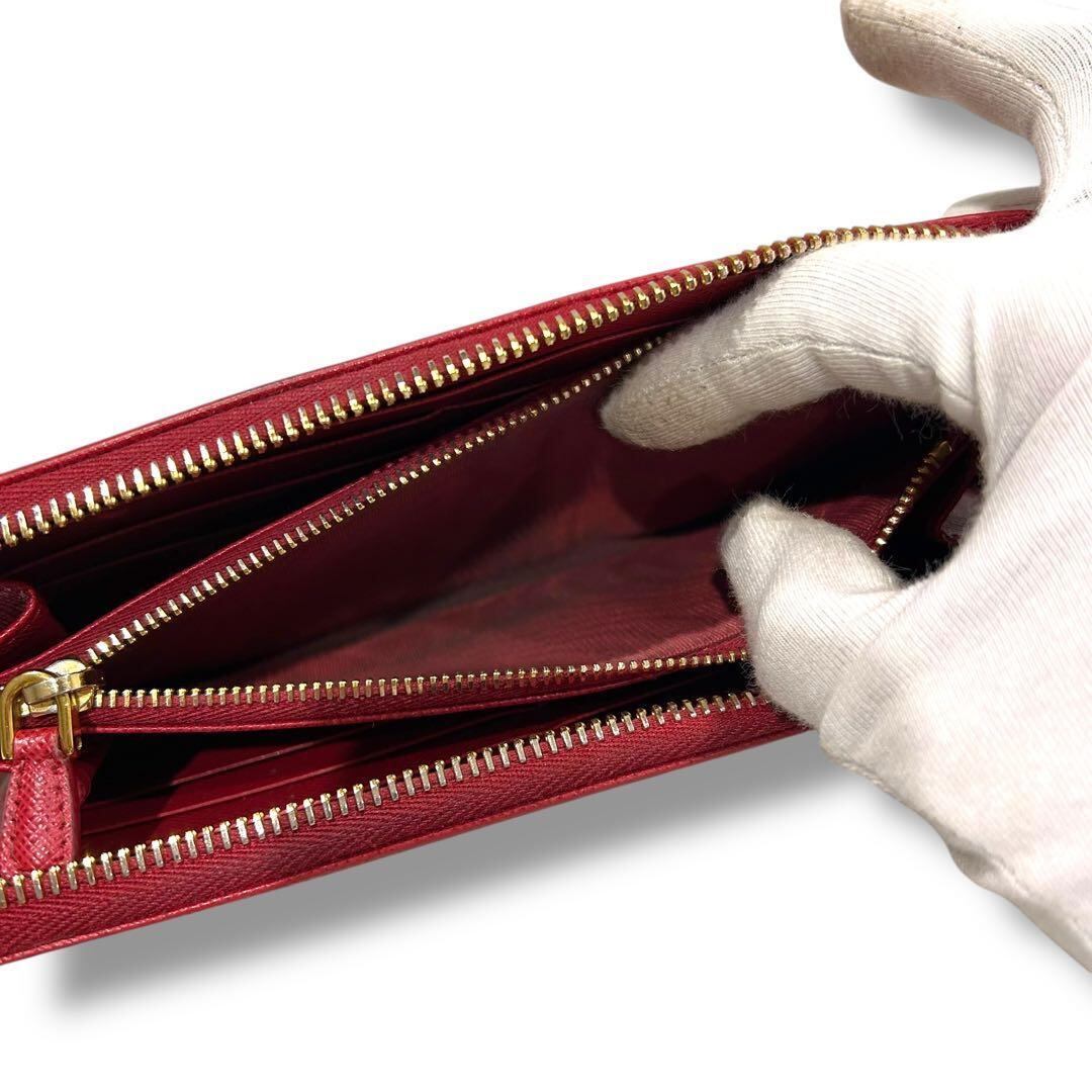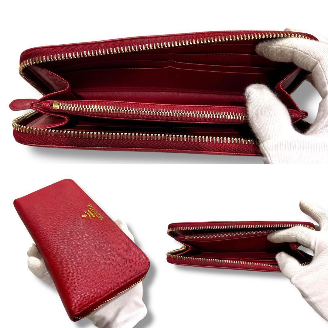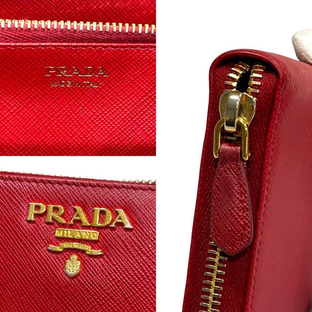 極美品 PRADA プラダ サフィアーノ 長財布 ジッピー レッド レディース ラウンドファスナー レディース