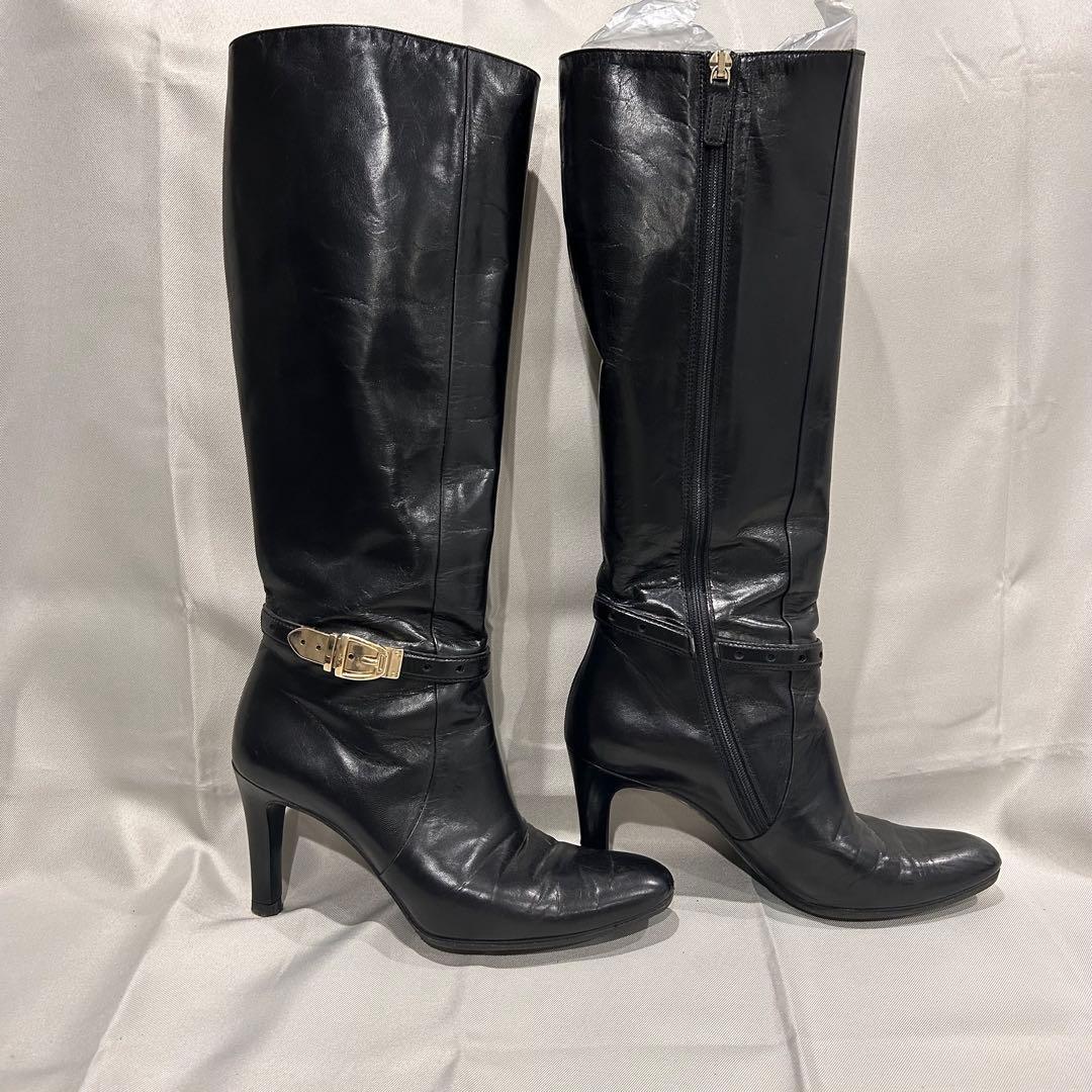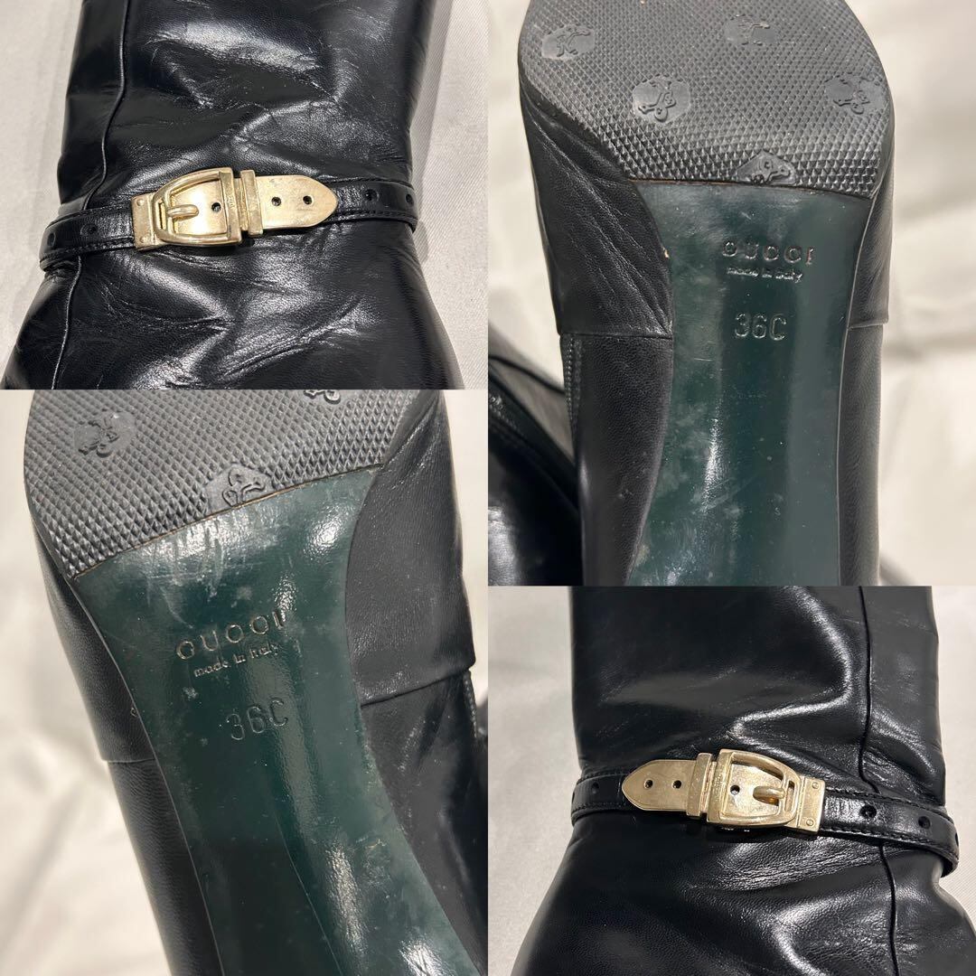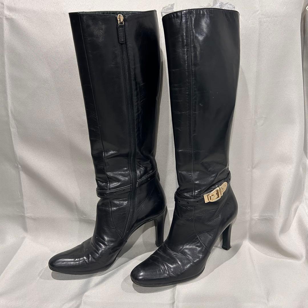 GUCCI グッチ ヒールブーツ ロング レザー レディース ブラック 23cm