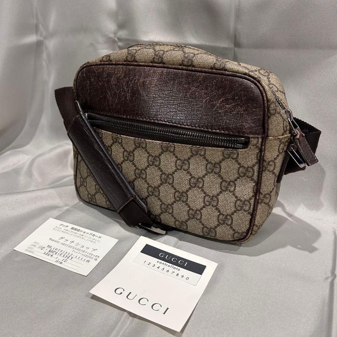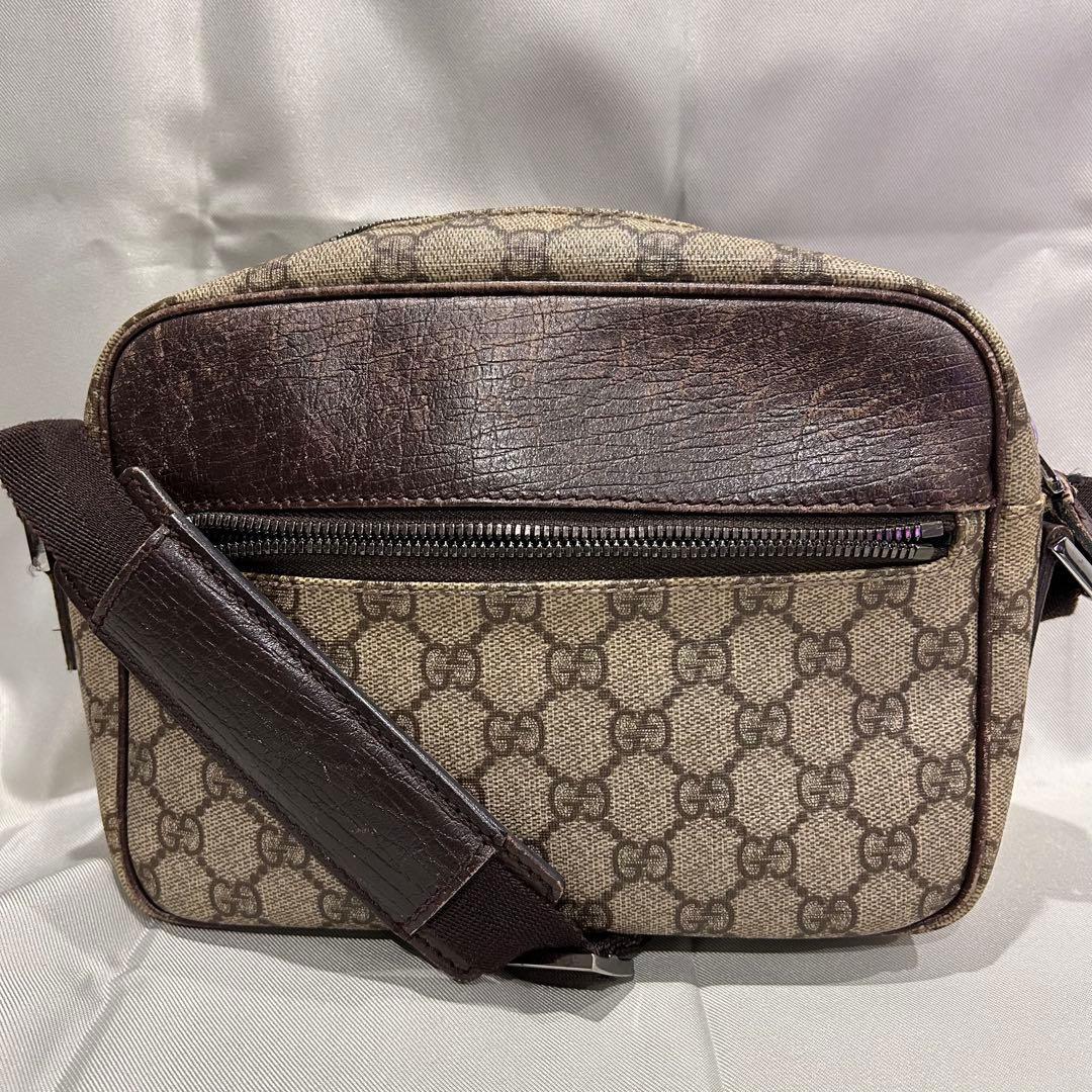 GUCCI グッチ GGスプリーム ショルダーバッグ レザー 斜めがけ ブラウン